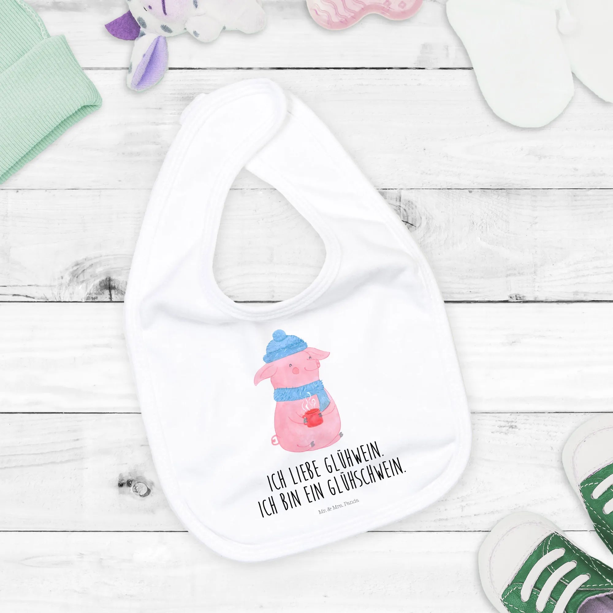 Mit dem witzigen Spruch "Ich liebe Glühwein. Ich bin ein Glühschwein." sorgt das Lätzchen für fröhliche Stimmung bei jedem Essen. Das entzückende pinke Schweinchen in warmer Winterkleidung, mit blauer Mütze und passendem Schal, hält eine dampfende Tasse in den Händen. Die liebevolle Gestaltung lässt das Herz jedes Betrachters höher schlagen und zaubert ein Lächeln auf die Gesichter der Eltern.