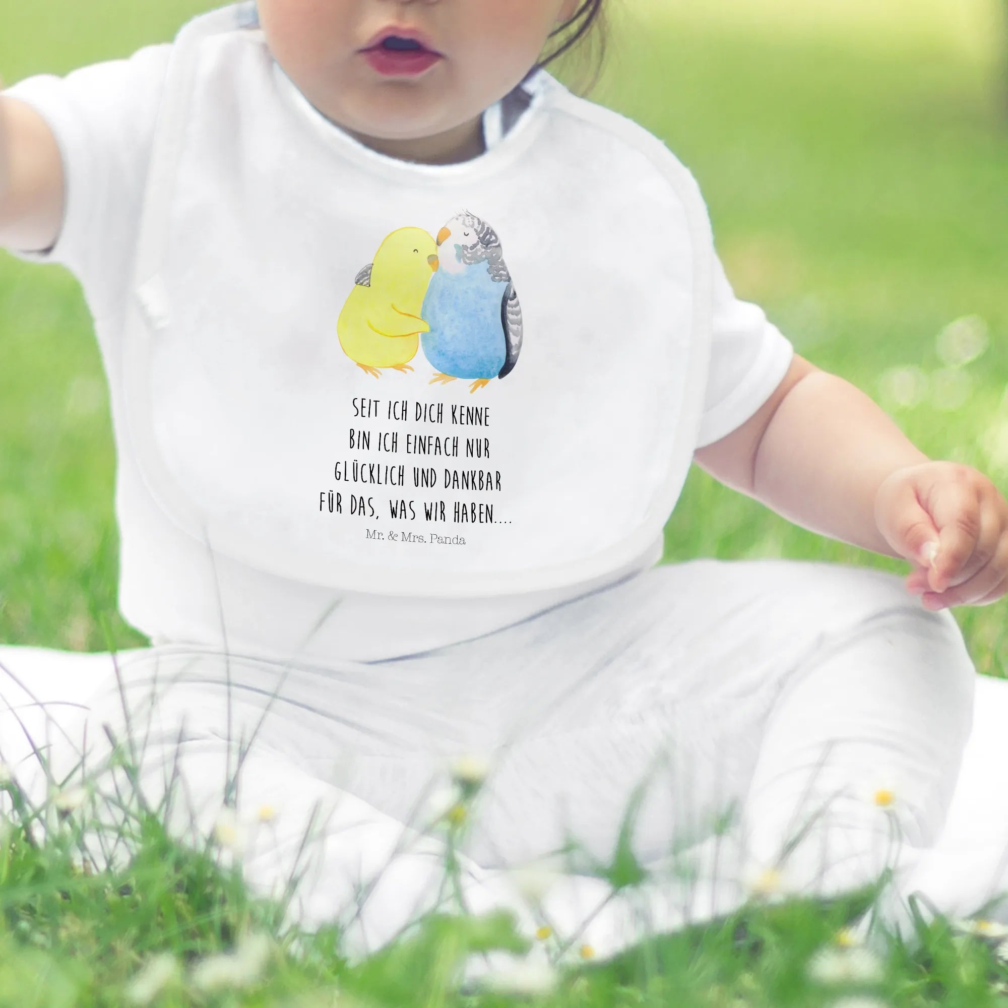 Das organic Babylätzchen mit dem zauberhaften Motiv "Wellensittich Liebe" von Mr. & Mrs. Panda ist das perfekte Geschenk für die ganz kleinen Entdecker in Deiner Familie oder im Freundes- und Bekanntenkreis. Dieses wunderschöne Lätzchen ist nicht nur praktisch, sondern auch ein echter Hingucker! Die sanften Farben und die liebevolle Darstellung eines süßen Pärchens von Wellensittichen, die vertrauensvoll aneinander kuscheln, schaffen eine warme und harmonische Atmosphäre, die sowohl Baby als auch Eltern begeistert.