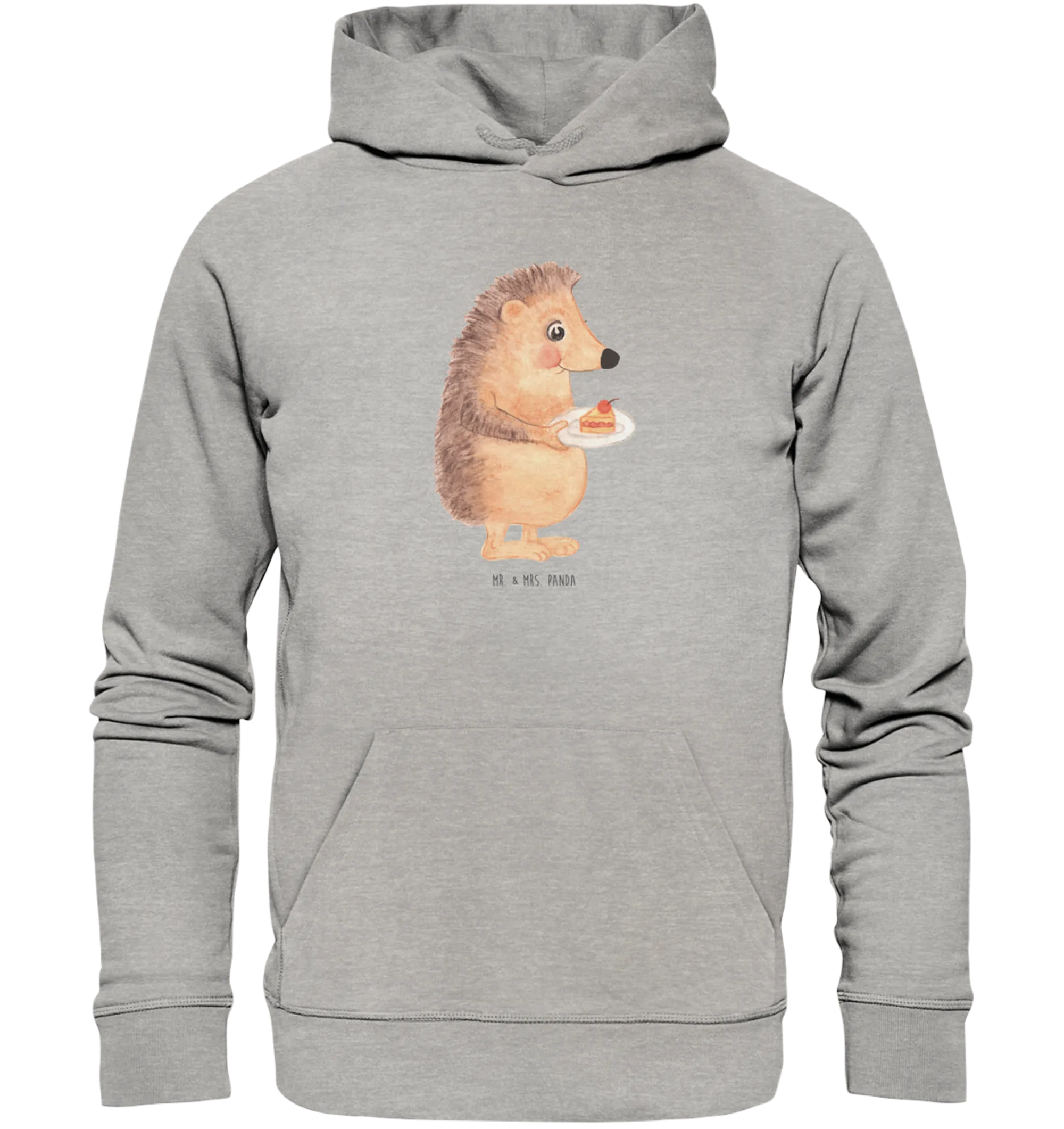 Der wundervolle Organic Hoodie mit dem bezaubernden Motiv des Igel mit Kuchenstück aus der Small World Kollektion von Mr. & Mrs. Panda ist das perfekte Geschenk für alle Kuchenliebhaber und Tierfreunde.