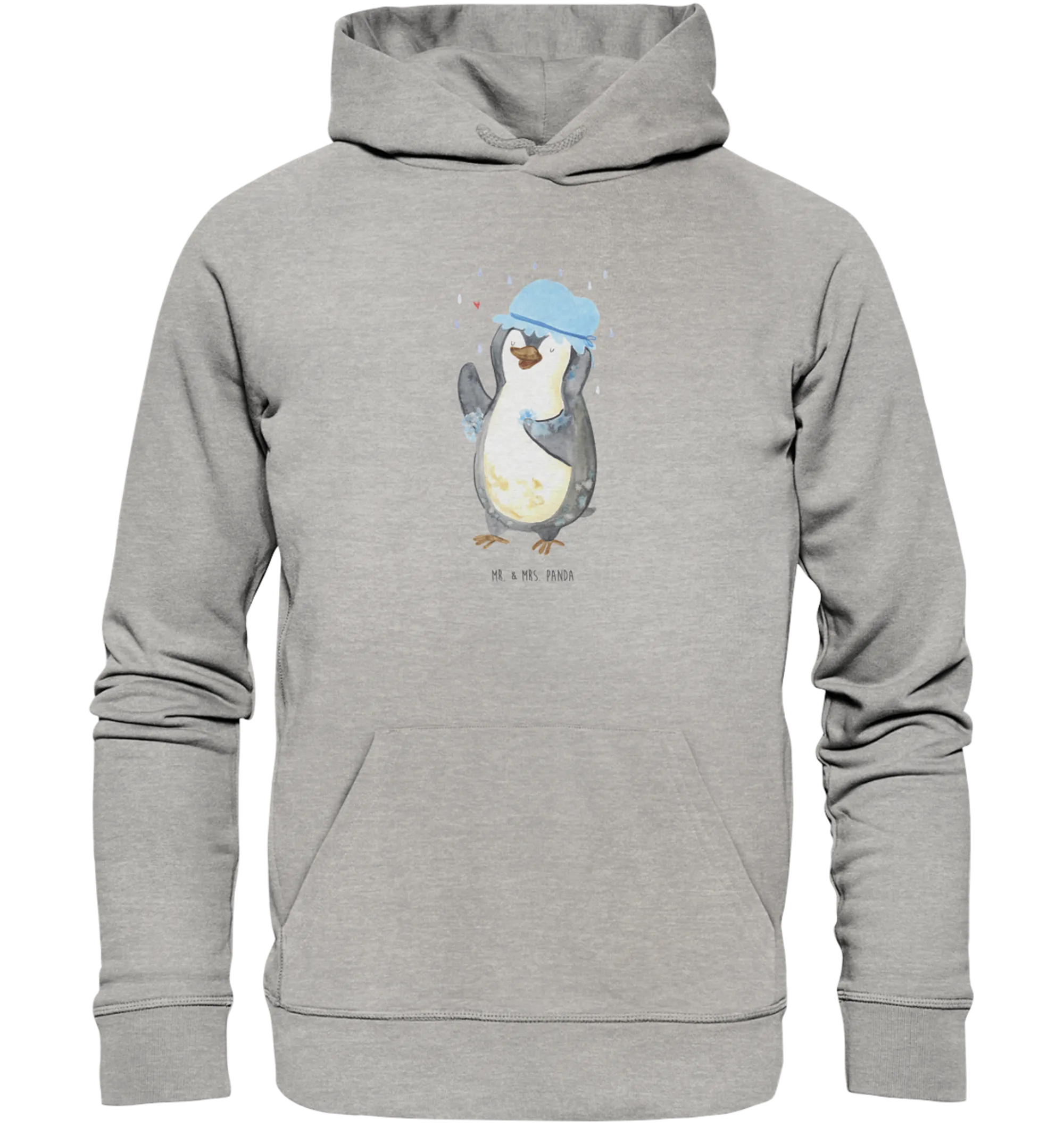Der wunderschöne Organic Hoodie mit dem Motiv "Pinguin duscht" aus der Pinguin-Kollektion von Mr. & Mrs. Panda ist das perfekte Geschenk für Pinguin-Fans und Menschen, die das Leben mit Freude und einem Augenzwinkern betrachten.