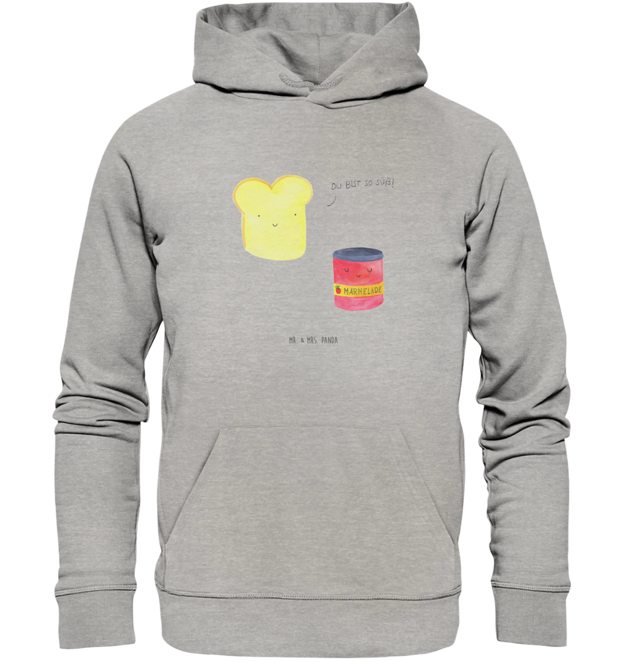 Egal, ob du ihn dir selbst gönnst oder jemandem eine Freude bereiten möchtest, der Organic Hoodie "Toast & Marmelade" ist eine wundervolle Wahl! Verleihe deiner Ausstattung einen Hauch von Niedlichkeit und teile die gute Laune, die dieses Kleidungsstück ausstrahlt.