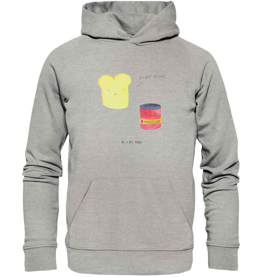 Mit dem entzückenden Motiv von einem Toast und einer Marmelade, die ineinander verliebt sind, bringt der Hoodie gute Laune in den Alltag. Das liebevolle Design wurde von Mrs. Panda in Aquarell handgezeichnet und erinnert an gemütliche Frühstücksfreuden. Egal, ob du ihn selbst trägst oder als Geschenk zur nächsten Frühstückseinladung mitbringst, dieser Hoodie wird bestimmt viele Lächeln zaubern.