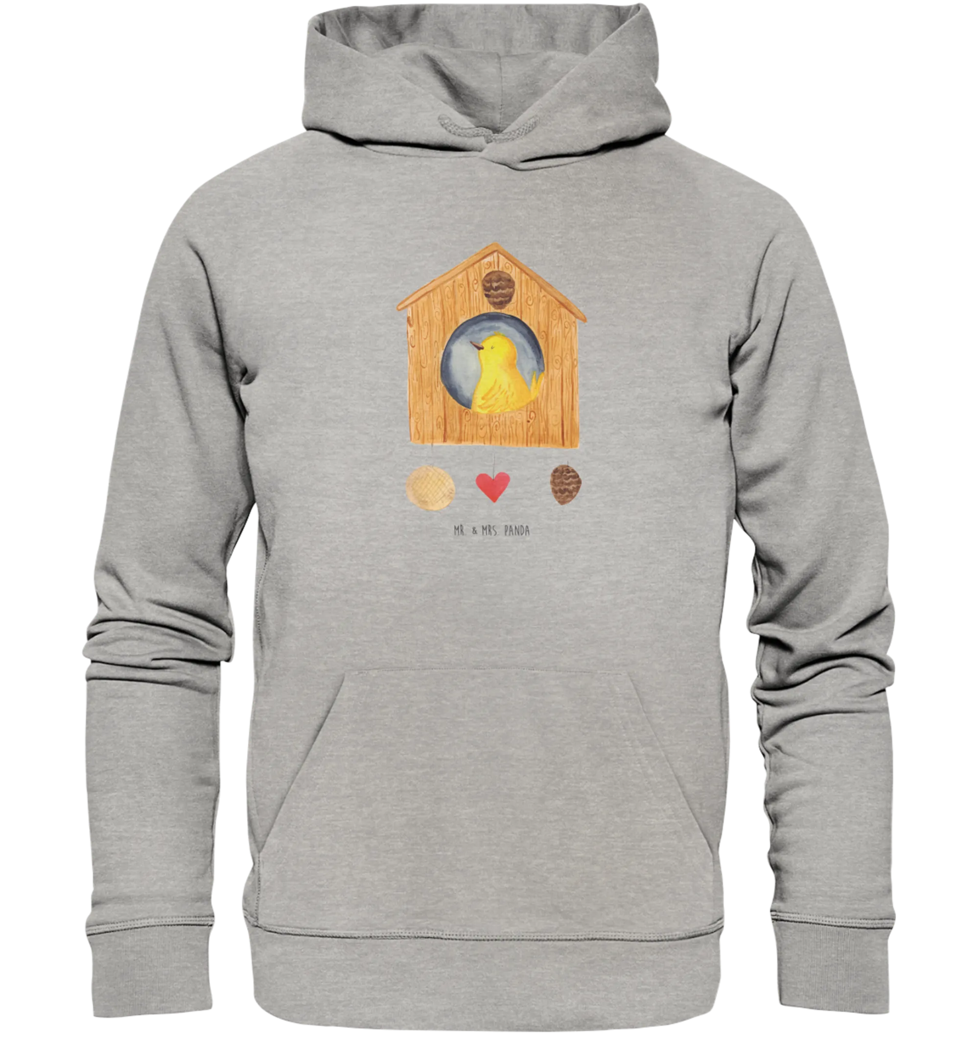 Der Organic Hoodie mit dem wunderschönen Vogelhaus-Motiv aus der Small World Kollektion von Mr. & Mrs. Panda ist das perfekte Geschenk für alle, die ihr Zuhause lieben und Tiere schätzen!