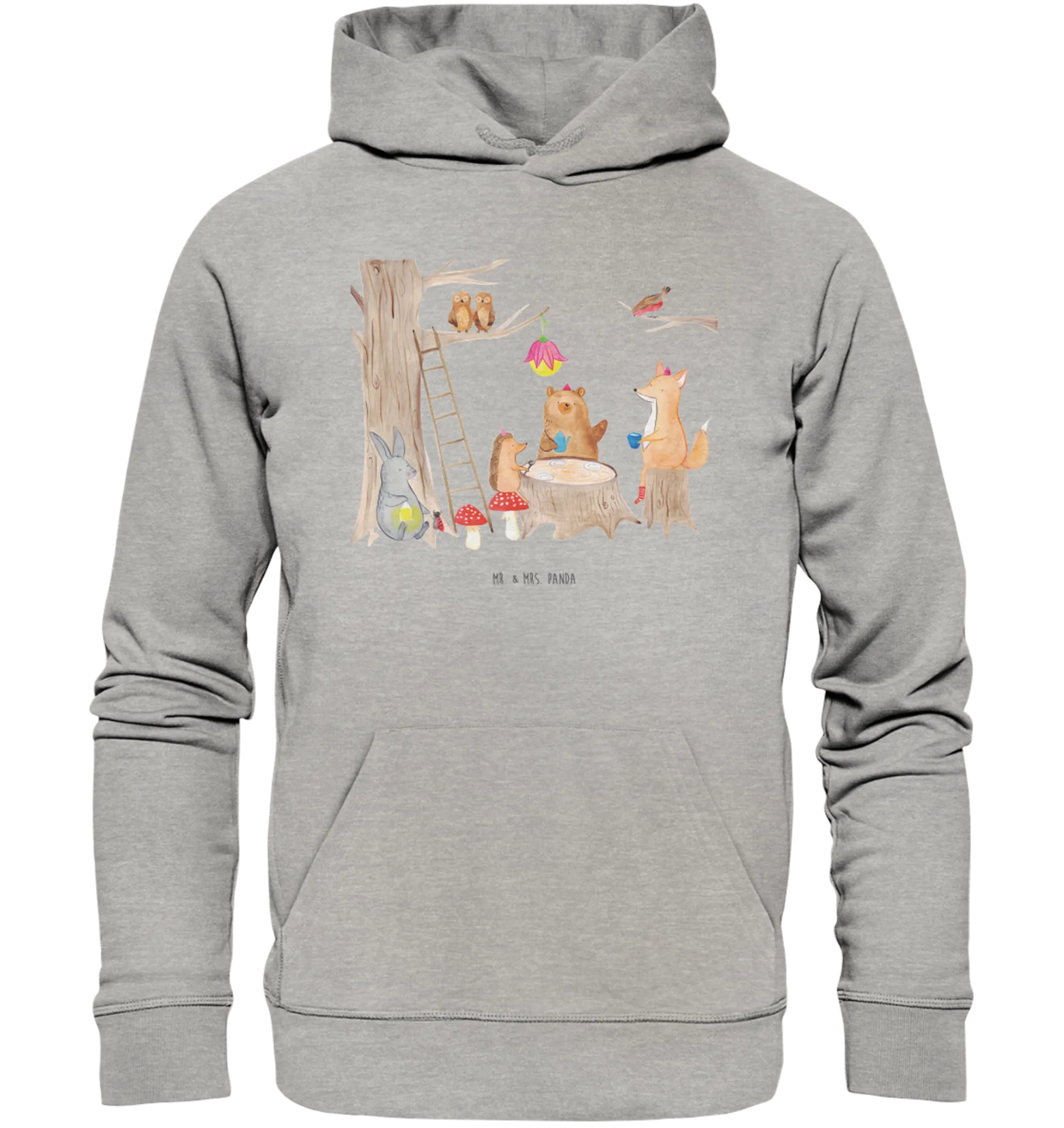 Du suchst nach dem perfekten Geschenk für Tierliebhaber oder Naturliebhaber? Dann ist der Organic Hoodie mit dem zauberhaften Motiv "Waldtiere Picknick" aus der Small World Kollektion von Mr. & Mrs. Panda genau das Richtige!