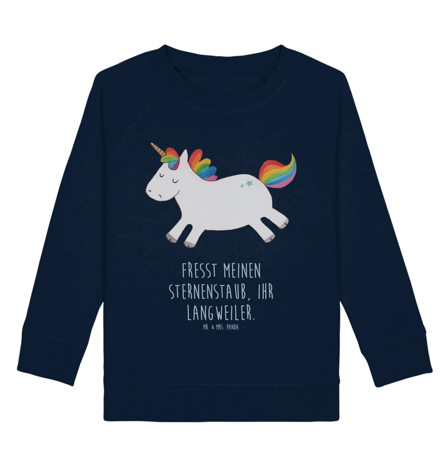 Der süße Einhorn Happy Pullover aus der Einhorn-Kollektion ist das perfekte Geschenk für kleine Abenteurerinnen und Abenteurer. Mit seinem zauberhaften Motiv und dem fröhlichen Slogan "Fresst meinen Sternenstaub, ihr Langweiler!" bringt dieser Organic Kinder Pullover Lebensfreude und ein Lächeln auf das Gesicht jedes Kindes. Hergestellt aus hochwertiger Öko-Baumwolle sorgt er für einen angenehmen Tragekomfort und ist gleichzeitig nachhaltig.