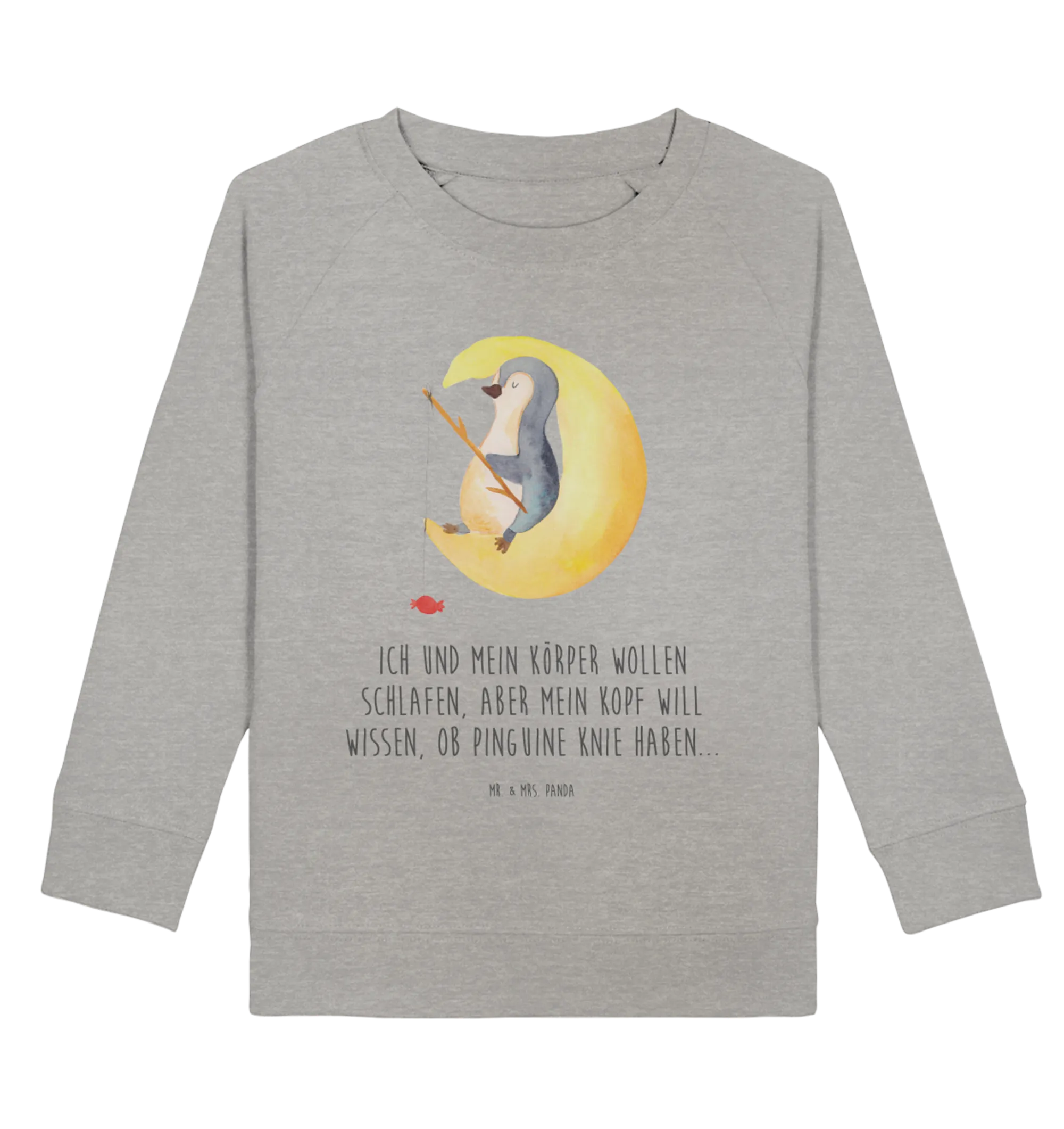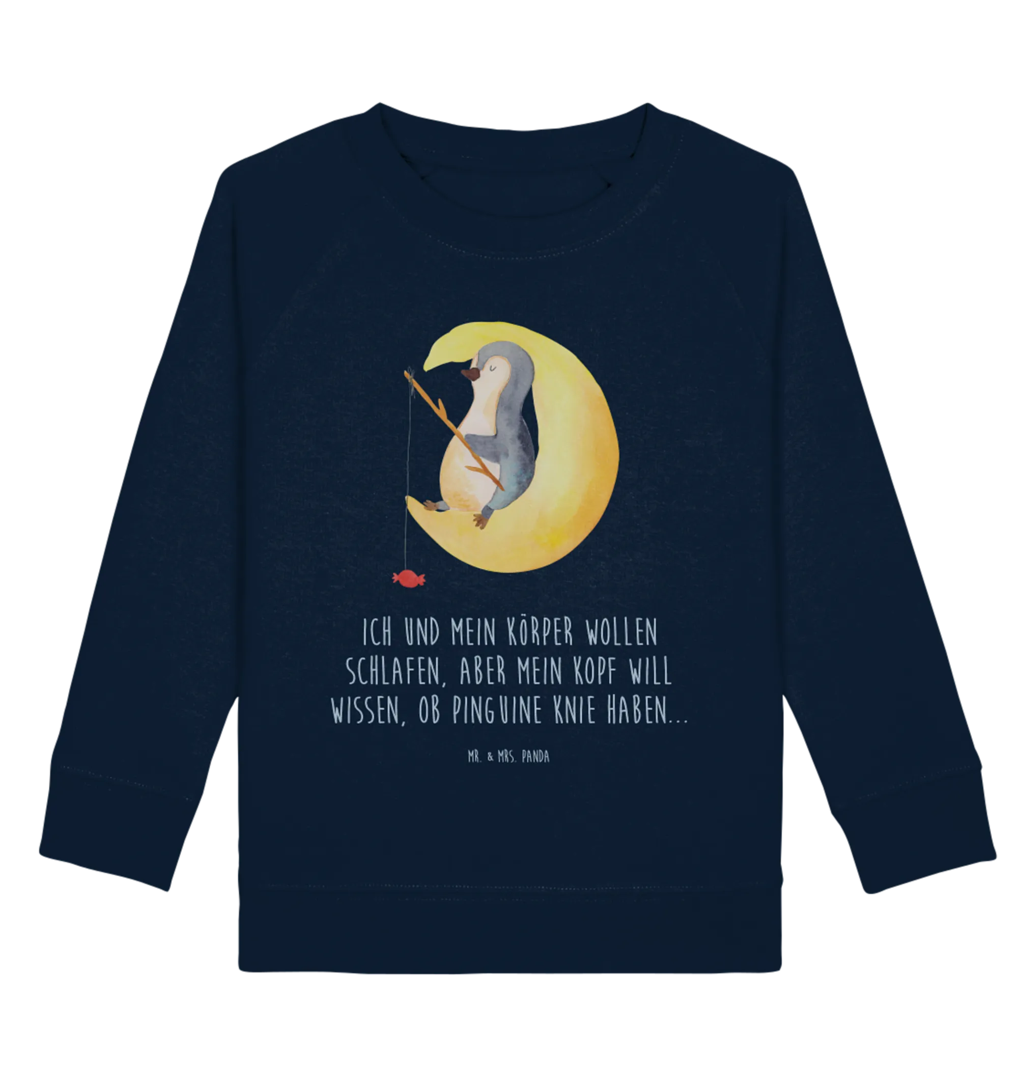 Der Organic Kinder Pullover mit dem niedlichen Pinguin Mond Motiv aus der Pinguin-Kollektion von Mr. & Mrs. Panda ist das perfekte Geschenk für alle kleinen Entdecker und Träumer!