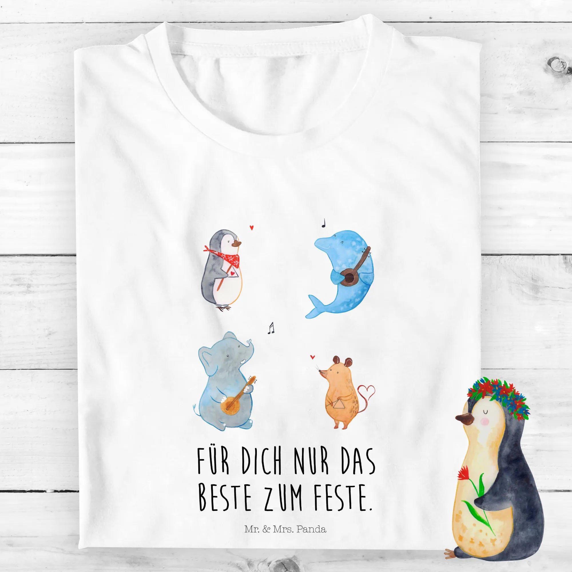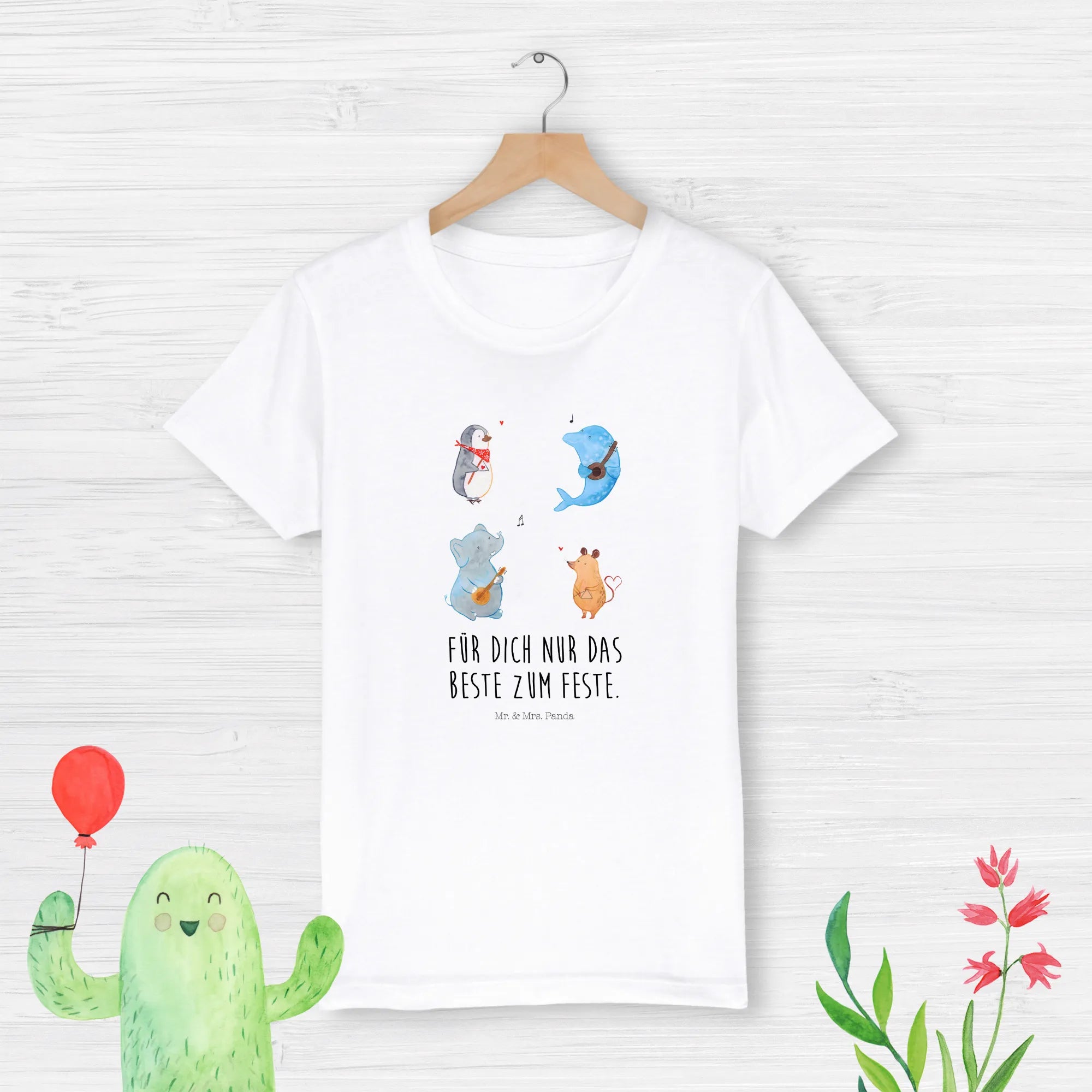 Du suchst nach dem perfekten Geschenk für kleine Musikliebhaber? Das Organic Kinder T-Shirt "Big Band" von Mr. & Mrs. Panda ist genau das richtige für dich! Dieses wunderschöne T-Shirt aus 100% Bio-Baumwolle vereint Komfort mit einem bezaubernden Design: Ein Pinguin, eine Maus, ein Delfin und ein Elefant musizieren gemeinsam und bringen so Freude in den Alltag deines kleinen Lieblings. Die lustige Truppe sorgt mit ihren besonderen Kostümen und den fröhlichen Melodien für gute Laune und lädt zum Mittanzen ein.