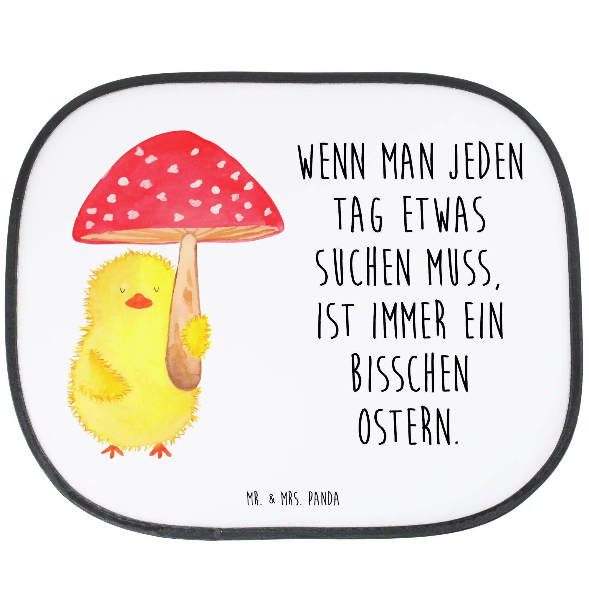 Ein Sonnenschutz fürs Auto mit Herz: Unser Sonnenschutz Auto „Küken Fliegenpilz“ aus der Ostern - Kollektion von Mr. & Mrs. Panda vereint praktischen Nutzen und liebevolles Design. Das niedliche Küken nutzt den Fliegenpilz als Regenschirm und zaubert ein Lächeln auf jede Reise. 😊