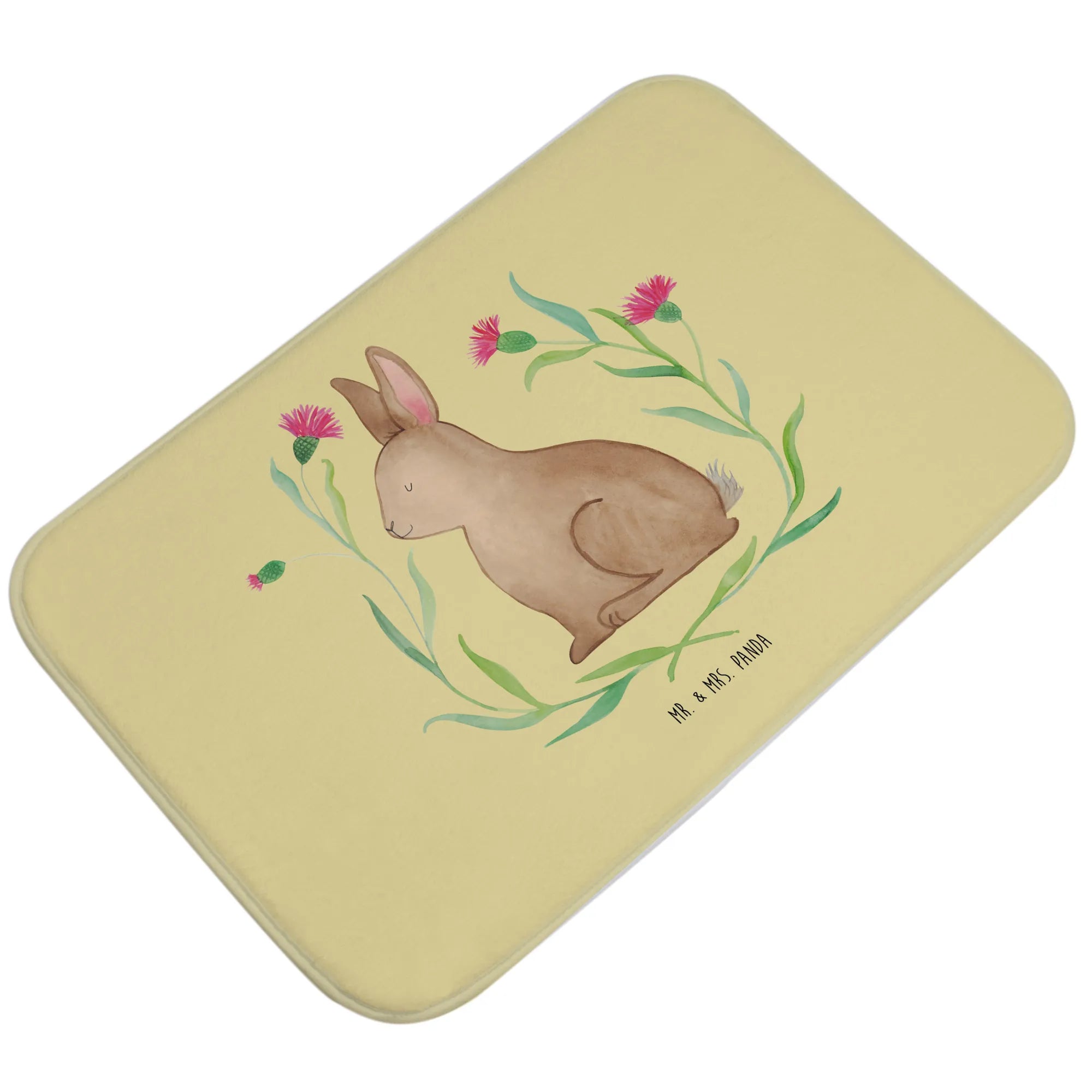 Der Badvorleger "Hase sitzend" aus der Ostern-Kollektion von Mr. & Mrs. Panda ist ein zauberhaftes Geschenk für alle, die die fröhlichen Farben und Motive des Osterfestes lieben. Mit seinen sanften Pastellfarben und dem niedlichen Motiv eines Hasen, der zwischen bunten Blumen sitzt, bringt er nicht nur Freude in dein Badezimmer, sondern sorgt auch für eine heimelige Atmosphäre.