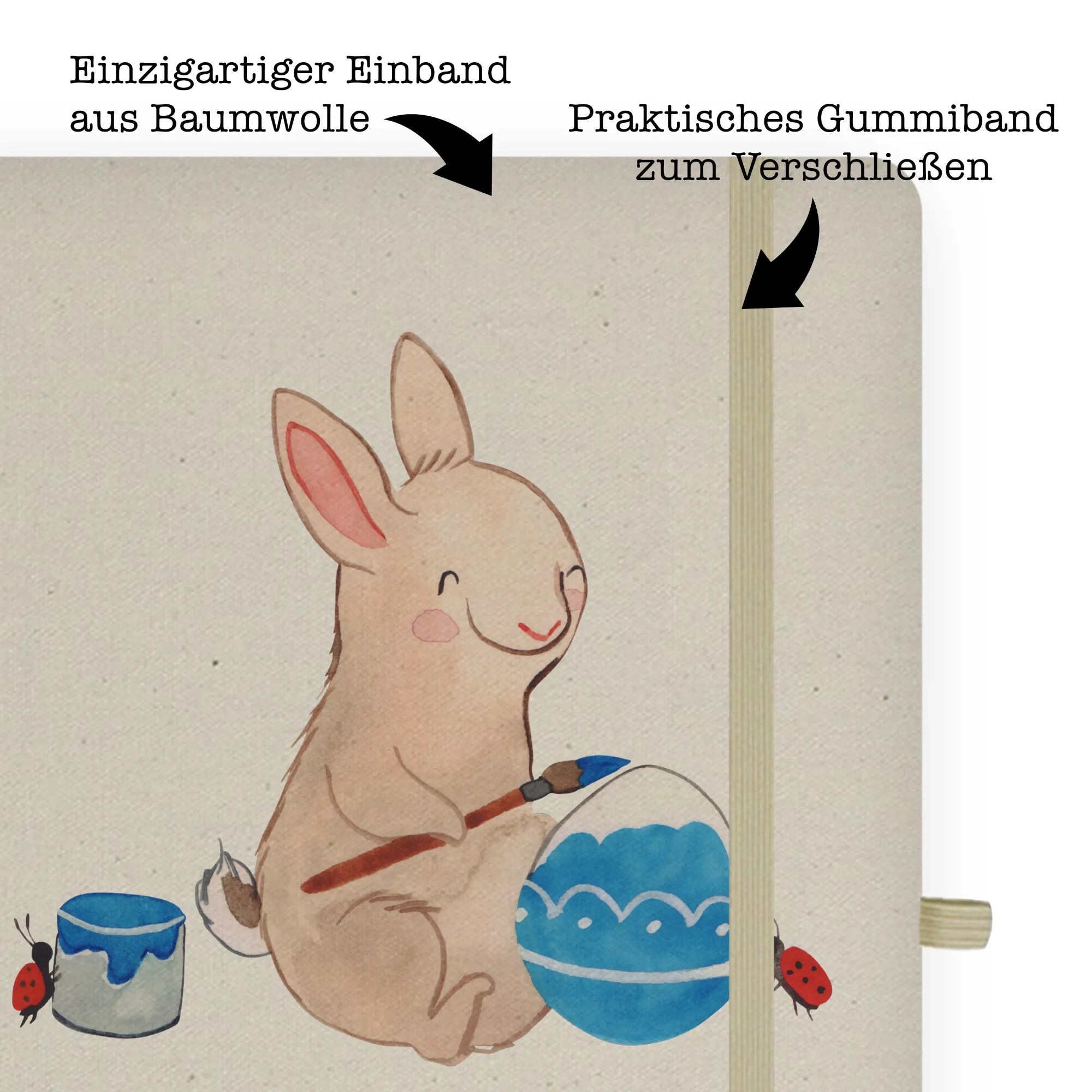 Bring Frühlingsfreude in deinen Alltag mit dem liebevoll gestalteten Notizbuch aus unserer Ostern - Kollektion. Auf dem Cover begrüßt dich ein eifrig malender Osterhase, begleitet von entzückenden Marienkäfern, die ihm beim Bemalen eines Ostereis zur Seite stehen. Die warmen Aquarellfarben und der fröhliche Spruch "Juhu, endlich ist Frühlingszeit und der Osterhase steht mit bemalten Eiern bereit. Drum wünsch ich dir zum Frühlingsfeste Glücksmomente und nur das Beste!" machen dieses Notizbuch zu einem echten Blickfang.