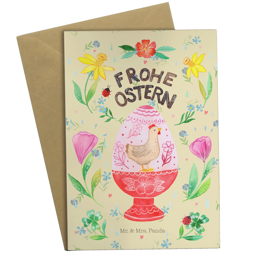 Die Grußkarte 'Frohe Ostern Ei' von Mr. & Mrs. Panda ist der perfekte Begleiter für ein festliches und liebevolles Osterfest.