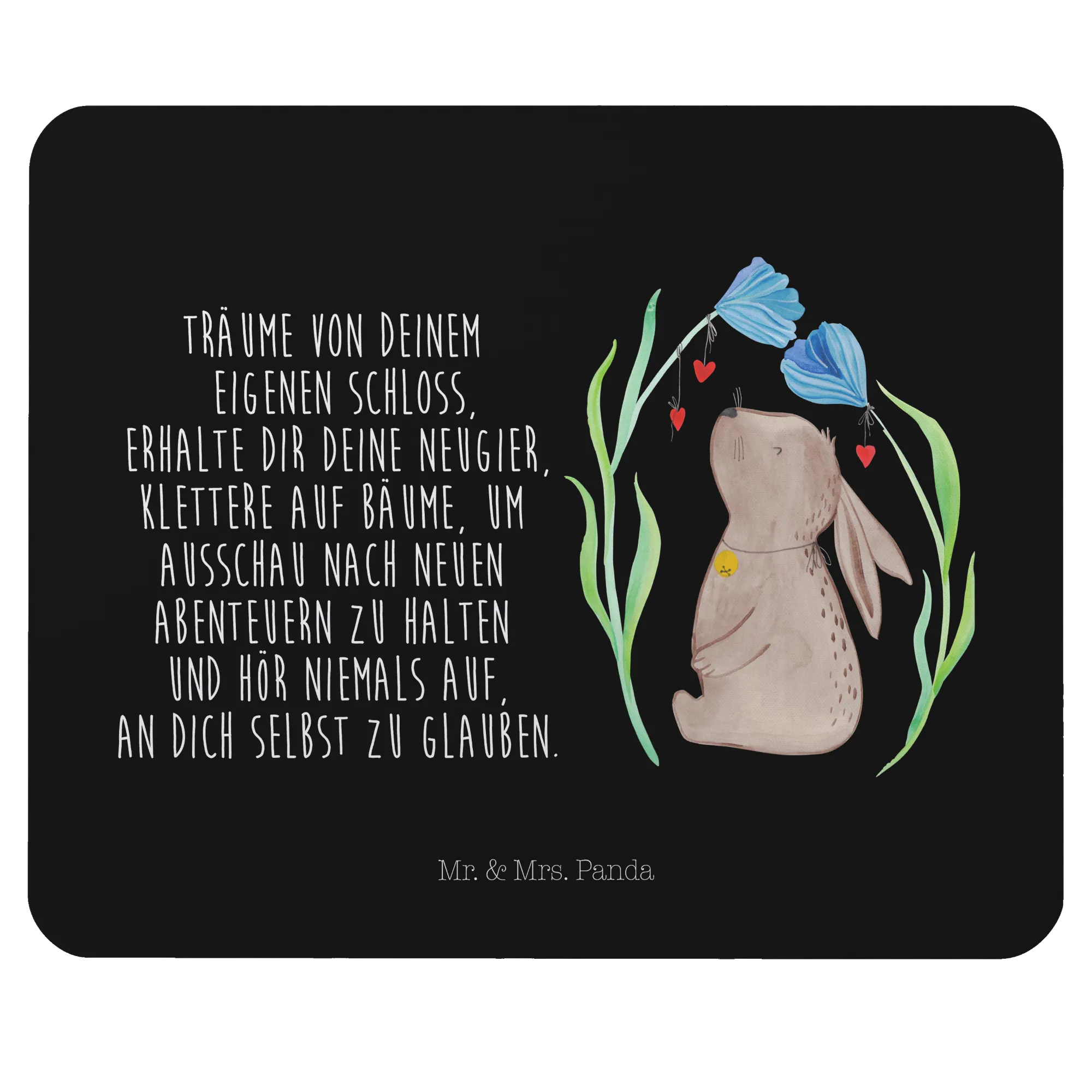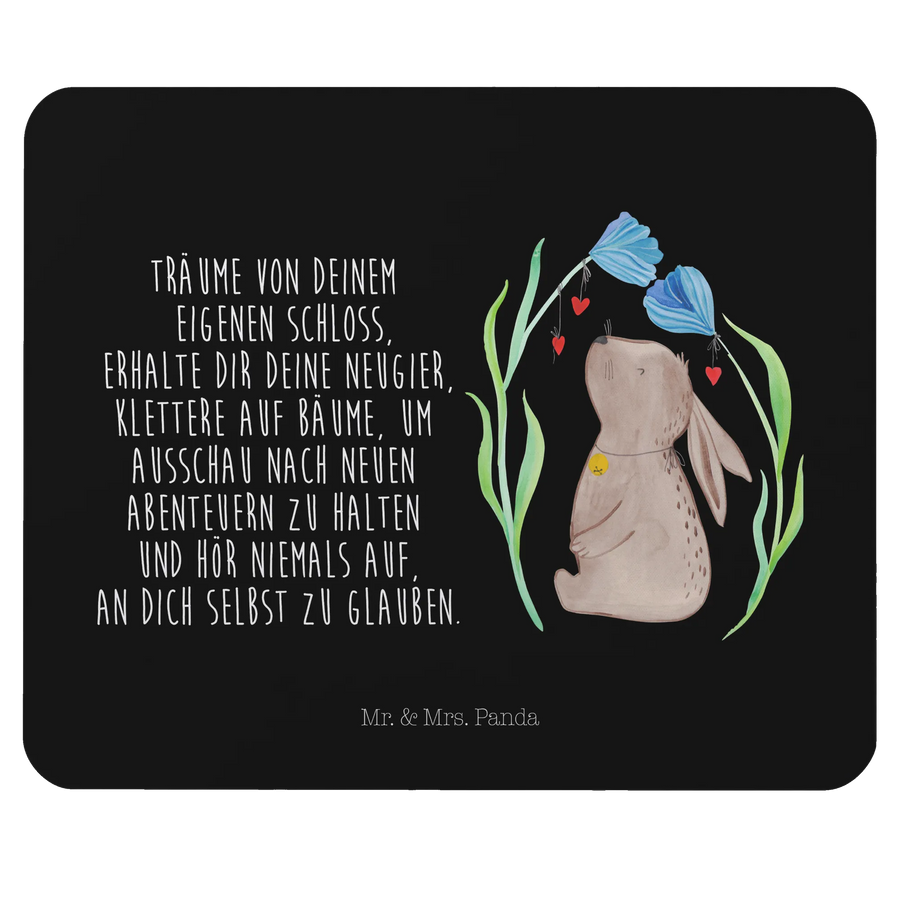 Mauspad Hase Blume - mit Spruch - Schwarz
