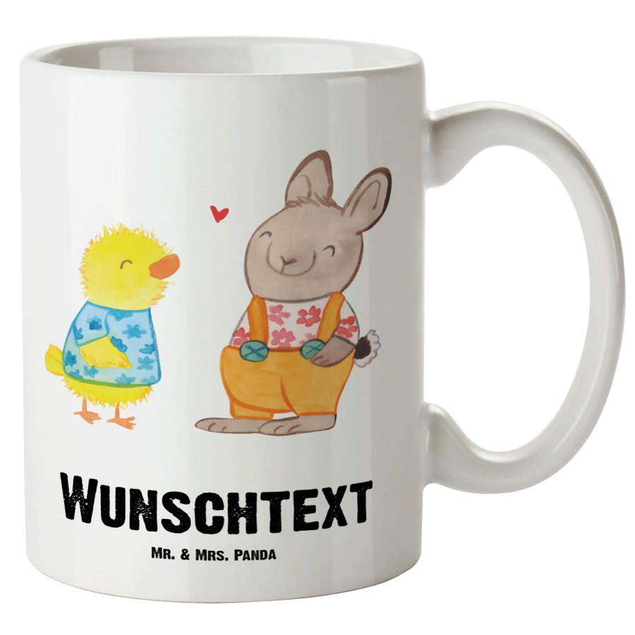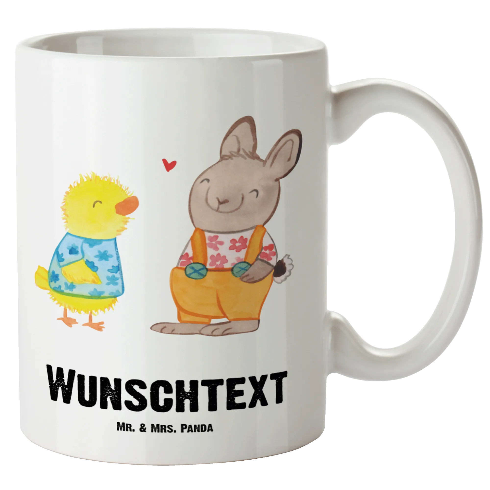 Die personalisierte XL Tasse Ostern Freundschaft von Mr. & Mrs. Panda ist das perfekte Geschenk für Deine Freunde und Familie in der Osterzeit. Diese liebevoll gestaltete große Kaffeetasse bringt nicht nur Frühlingsgefühle in Dein Zuhause, sondern auch eine Botschaft von Freundschaft und Liebe. Der entzückende Hase in seiner Latzhose und das süße Küken strahlen fröhliche Zusammengehörigkeit aus und machen diese Tasse zu einem wunderbaren Ostergeschenk.