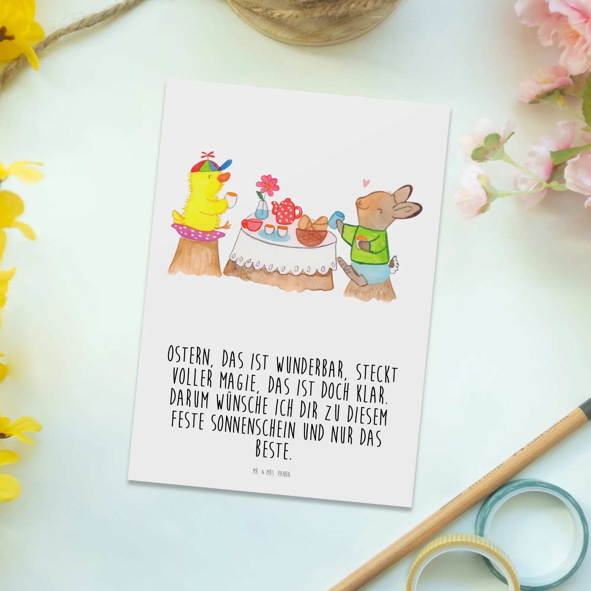 Mit dem liebevollen und detailreichen Design von Mr. & Mrs. Panda zaubert diese Postkarte jedem ein Lächeln ins Gesicht. Der Slogan "Ostern, das ist wunderbar, steckt voller Magie, das ist doch klar. Darum wünsche ich dir zu diesem Feste Sonnenschein und nur das Beste." bringt die Freude und Magie von Ostern perfekt zum Ausdruck. Diese Karte eignet sich nicht nur als Geburtstagskarte oder Dankeskarte, sondern ist auch ideal als Einladung zu einem fröhlichen Osterpicknick.