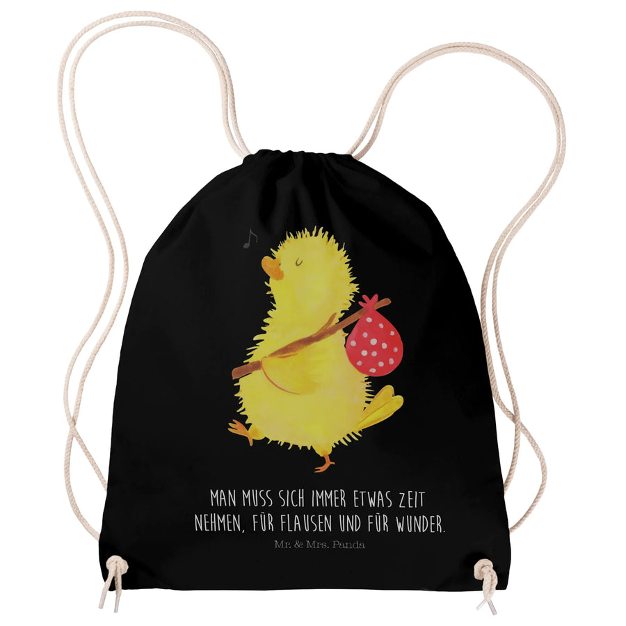 Sportbeutel Küken Wander - mit Spruch - Schwarz