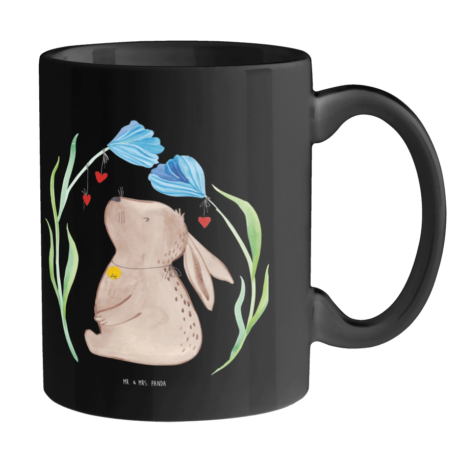 Tasse Hase Blume - ohne Spruch - Keramik Schwarz - Schwarz