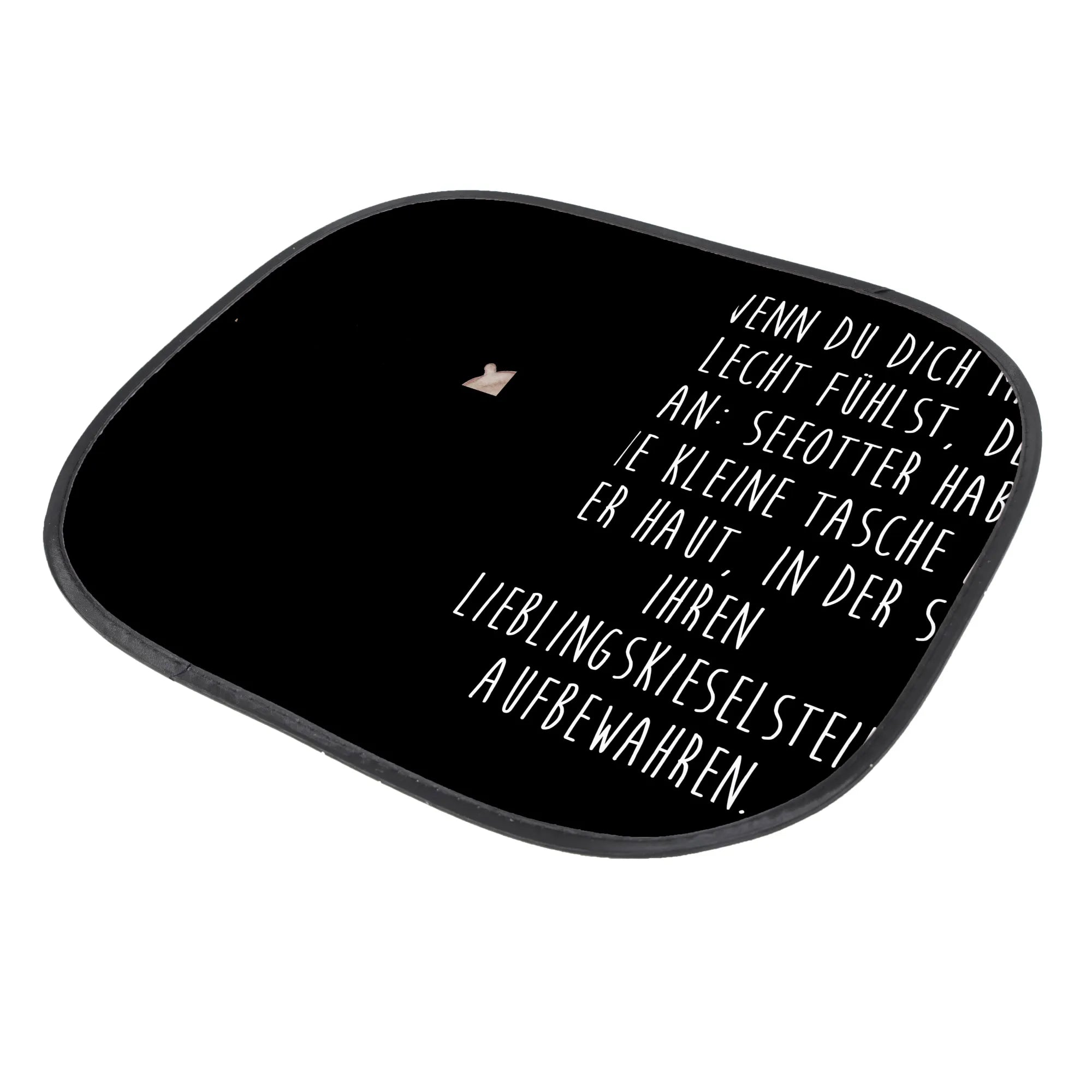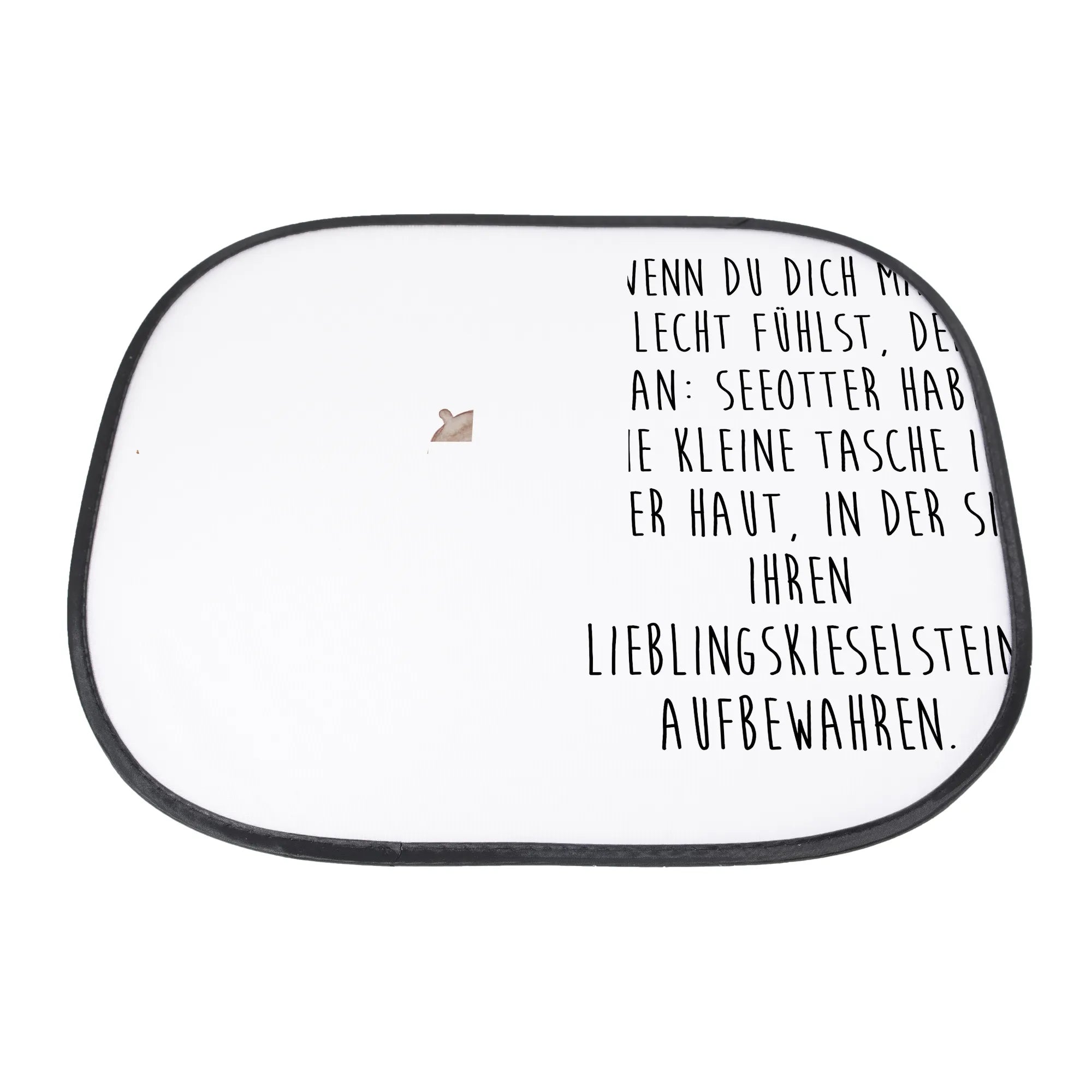 Zusammen mit dem Spruch: "Wenn du dich mal schlecht fühlst, denk daran: Seeotter haben eine kleine Tasche in ihrer Haut, in der sie ihren Lieblingskieselstein aufbewahren." wird dieser Sonnenschutz nicht nur zum praktischen Accessoire, sondern auch zum täglichen Mutmacher.
