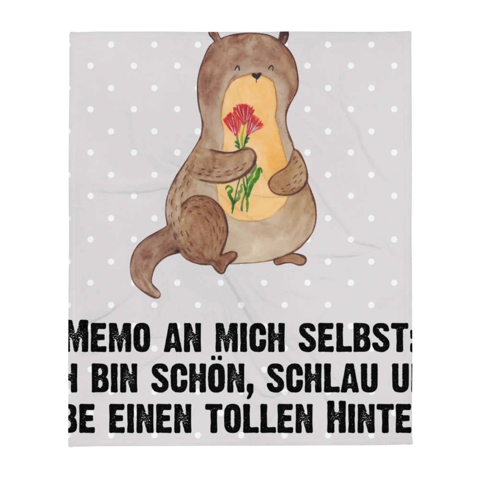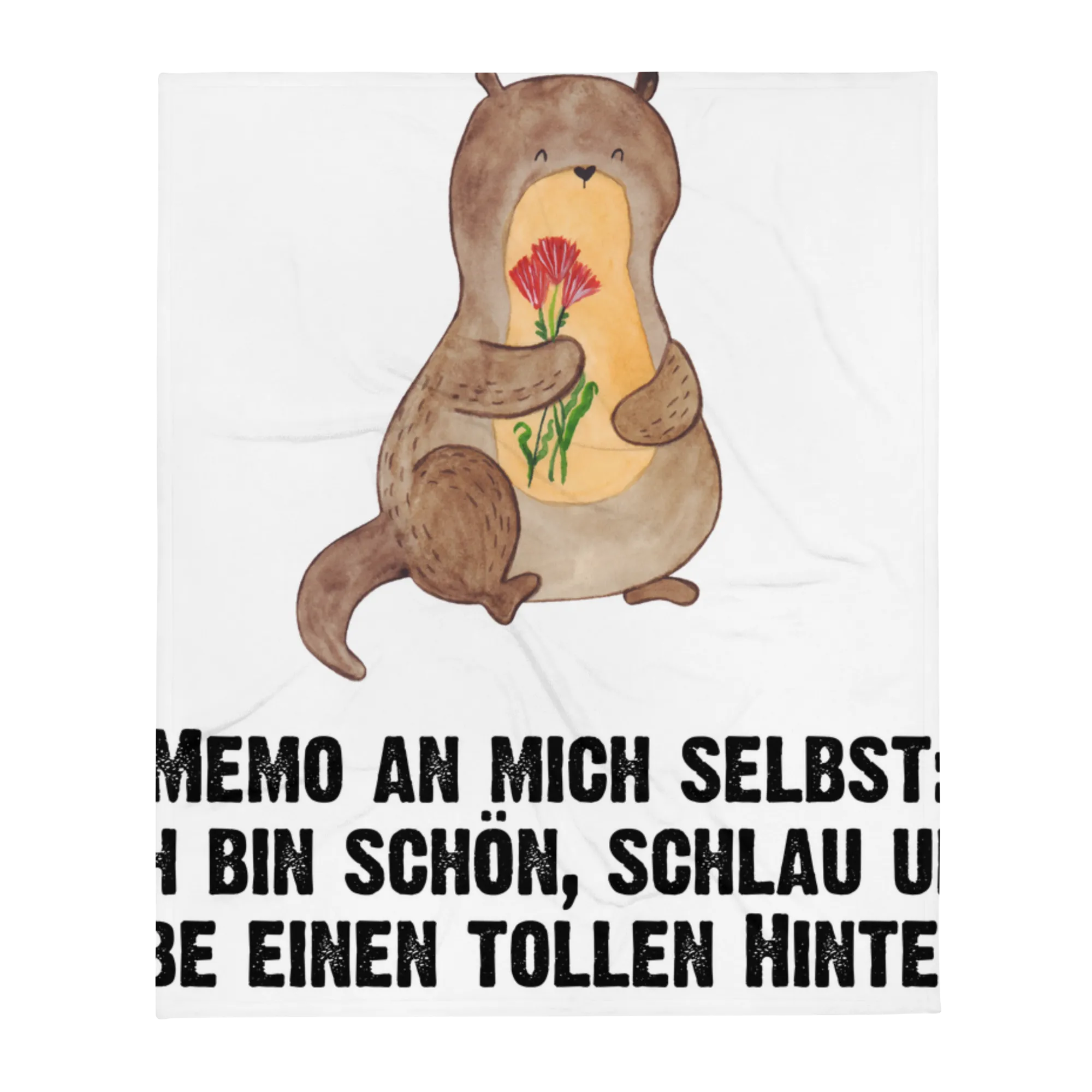 Babydecke Otter Blumenstrauß - mit Spruch - Premium Polyester flauschig - Weiß