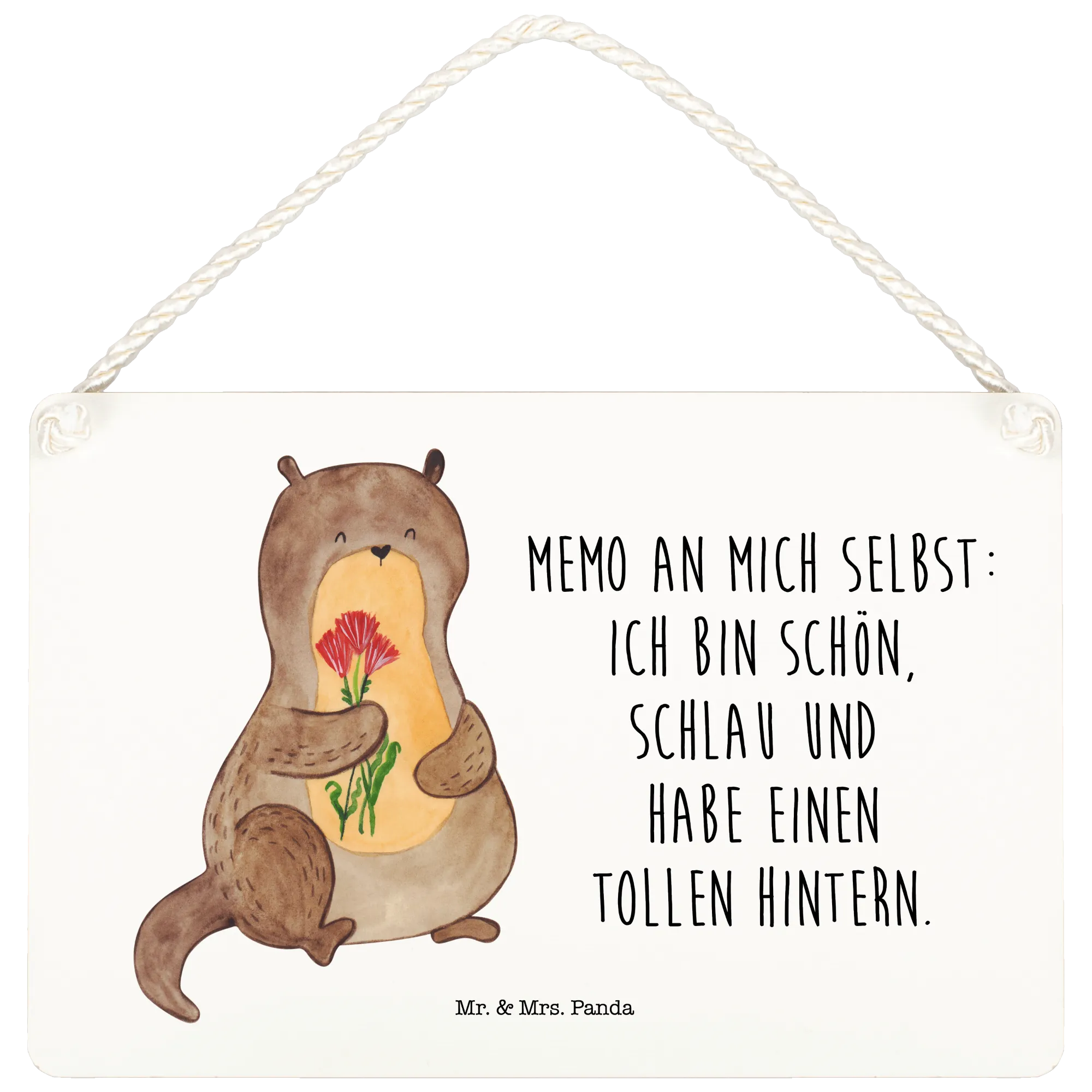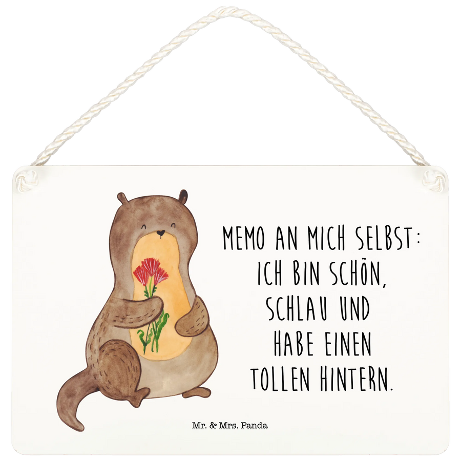 Mr. & Mrs. Panda Deko Schild „Otter Blumenstrauß“ – ein kleiner Seeotter, ein bunter Blumenstrauß und ein frecher Spruch, der dir jeden Tag ein Schmunzeln schenkt. Das liebevoll in Aquarell entworfene Motiv zeigt einen süßen Otter mit einem kunterbunten Strauß und dem Text: „Memo an mich selbst: ich bin schön, schlau und habe einen tollen Hintern.“ 😊
