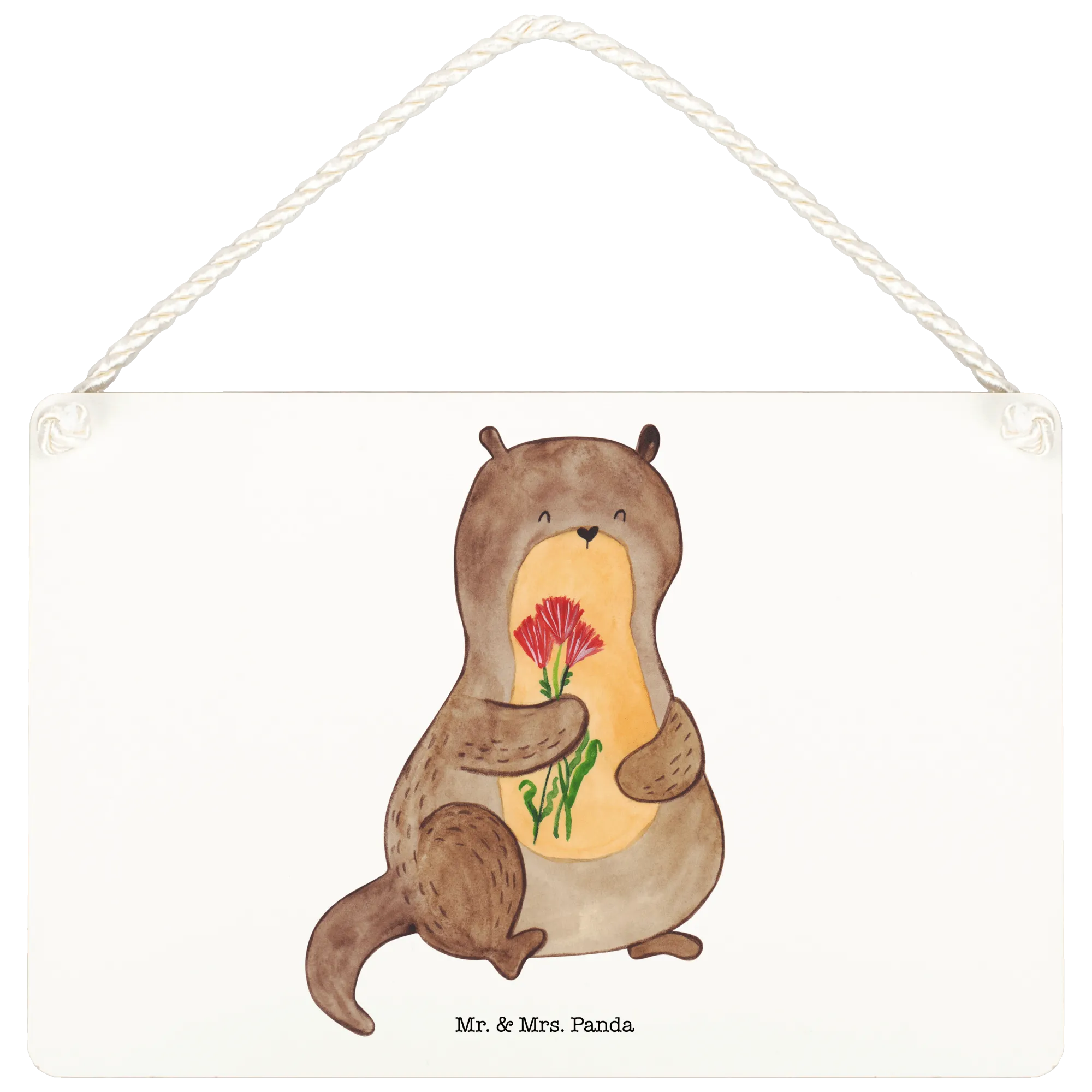 Deko Schild Otter Blumenstrauß - DIN A5 - mit Spruch - Weiß