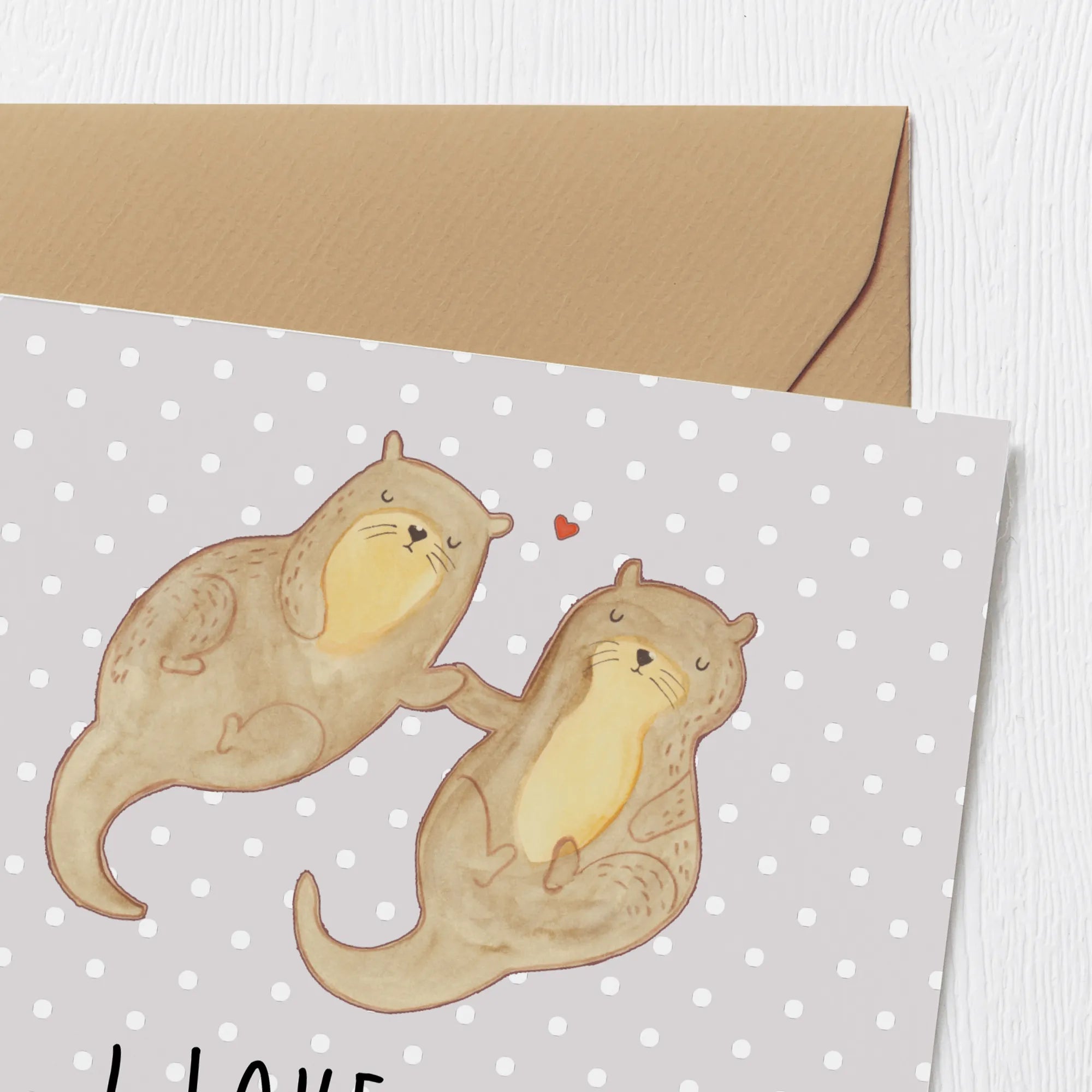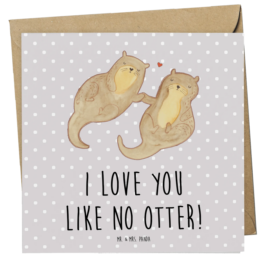 Wer könnte dem niedlichen Otter-Paar widerstehen, das glücklich auf dem Rücken schwimmt und Händchen hält? Diese Karte ist mit dem liebevollen Slogan "I love you like no otter!" versehen und macht sie zu einem ganz besonderen Geschenk für Deinen Liebsten oder Deine Liebste. Ihr seht das Otter-Paar, das symbolisch für die Verbundenheit und Zweisamkeit steht – einfach herzallerliebst!