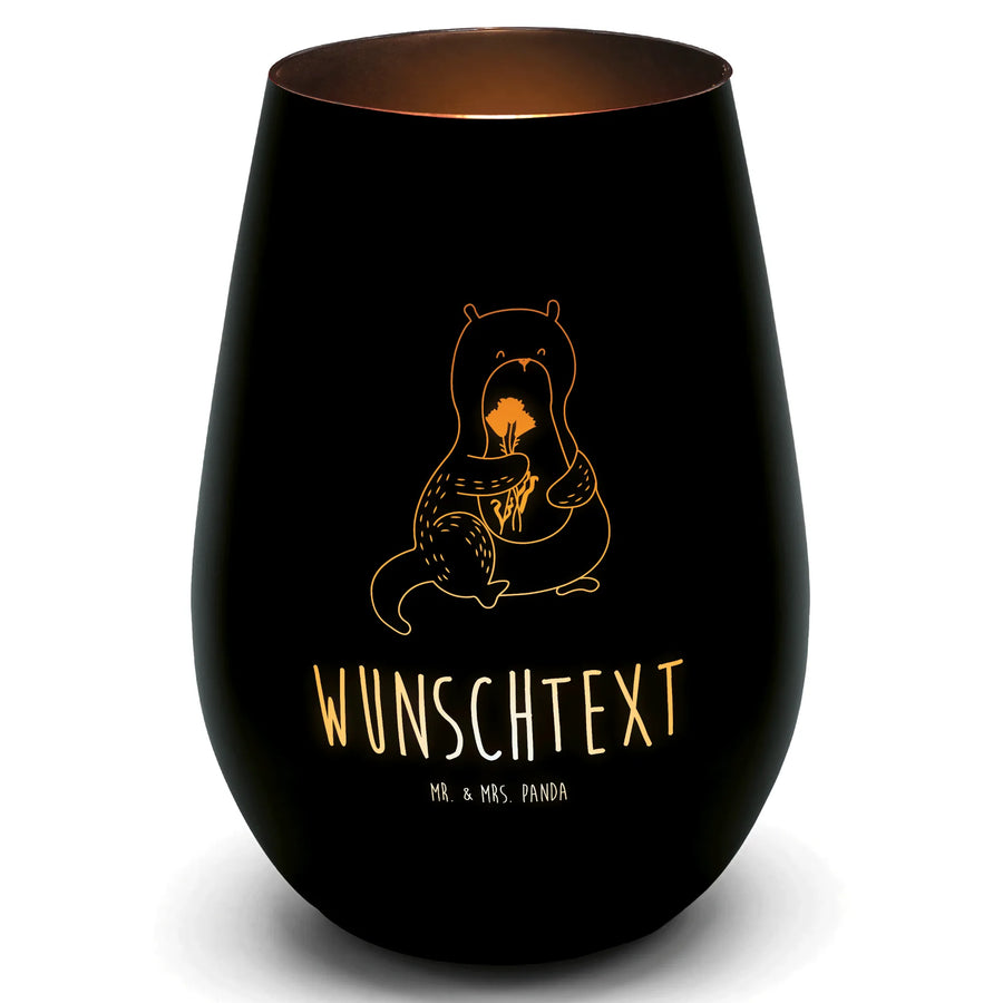 Gold Windlicht Personalisiert Otter Blumenstrauß - Schwarz