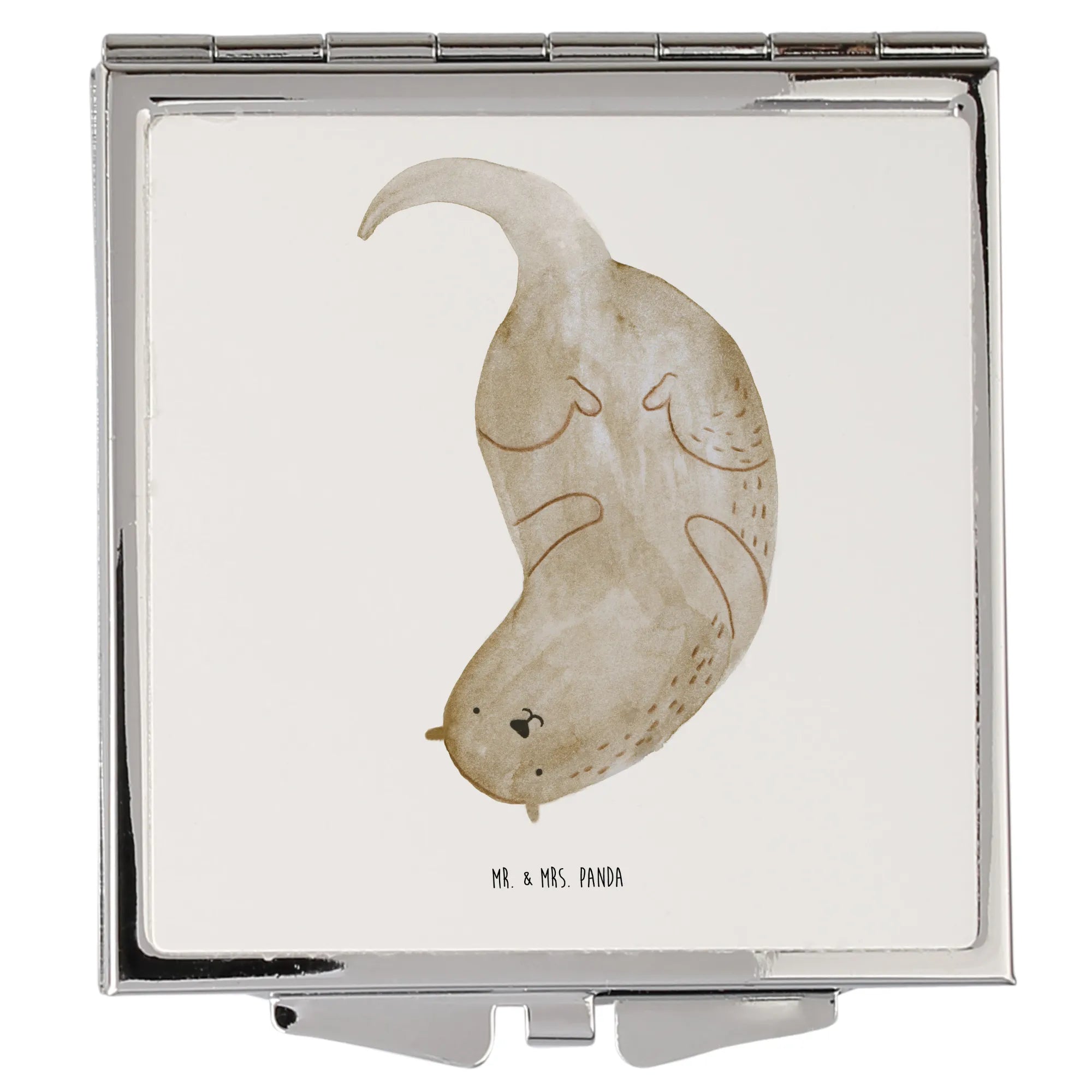 Handtaschenspiegel quadratisch Otter Kopfüber - mit Spruch - Weiß
