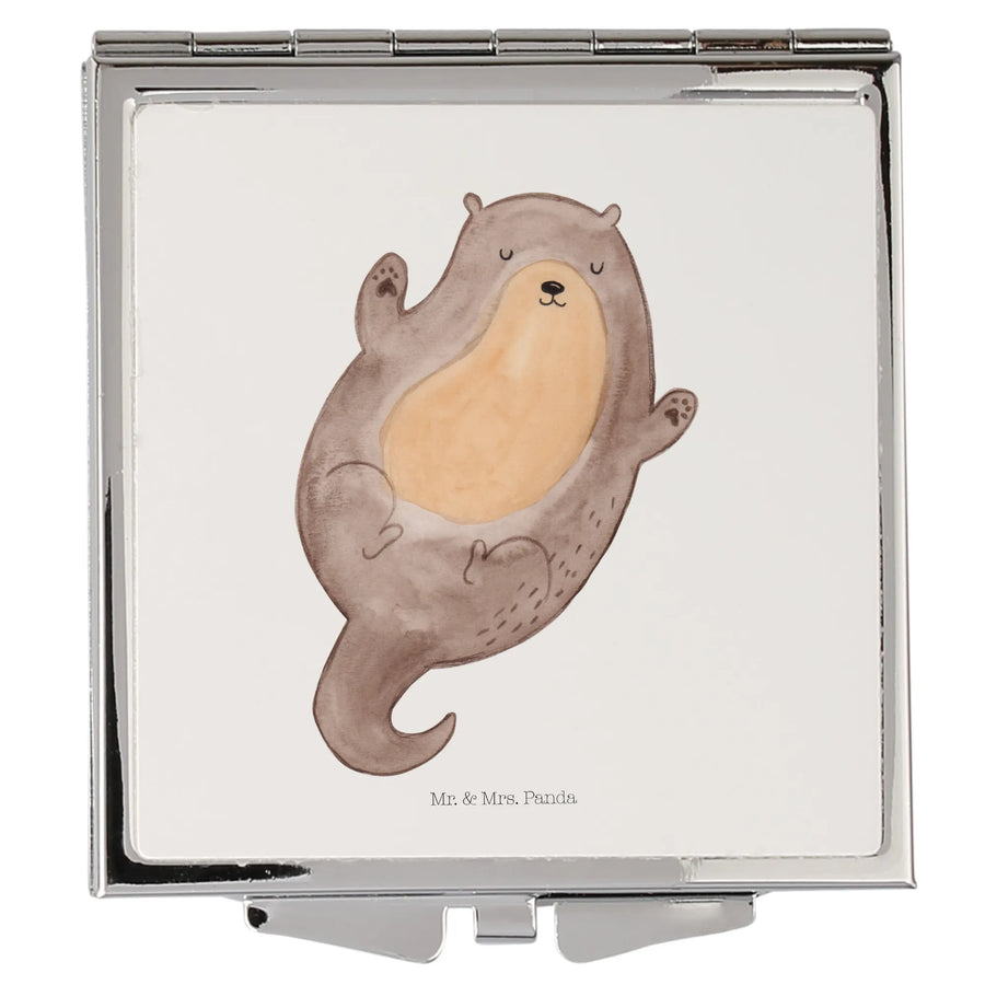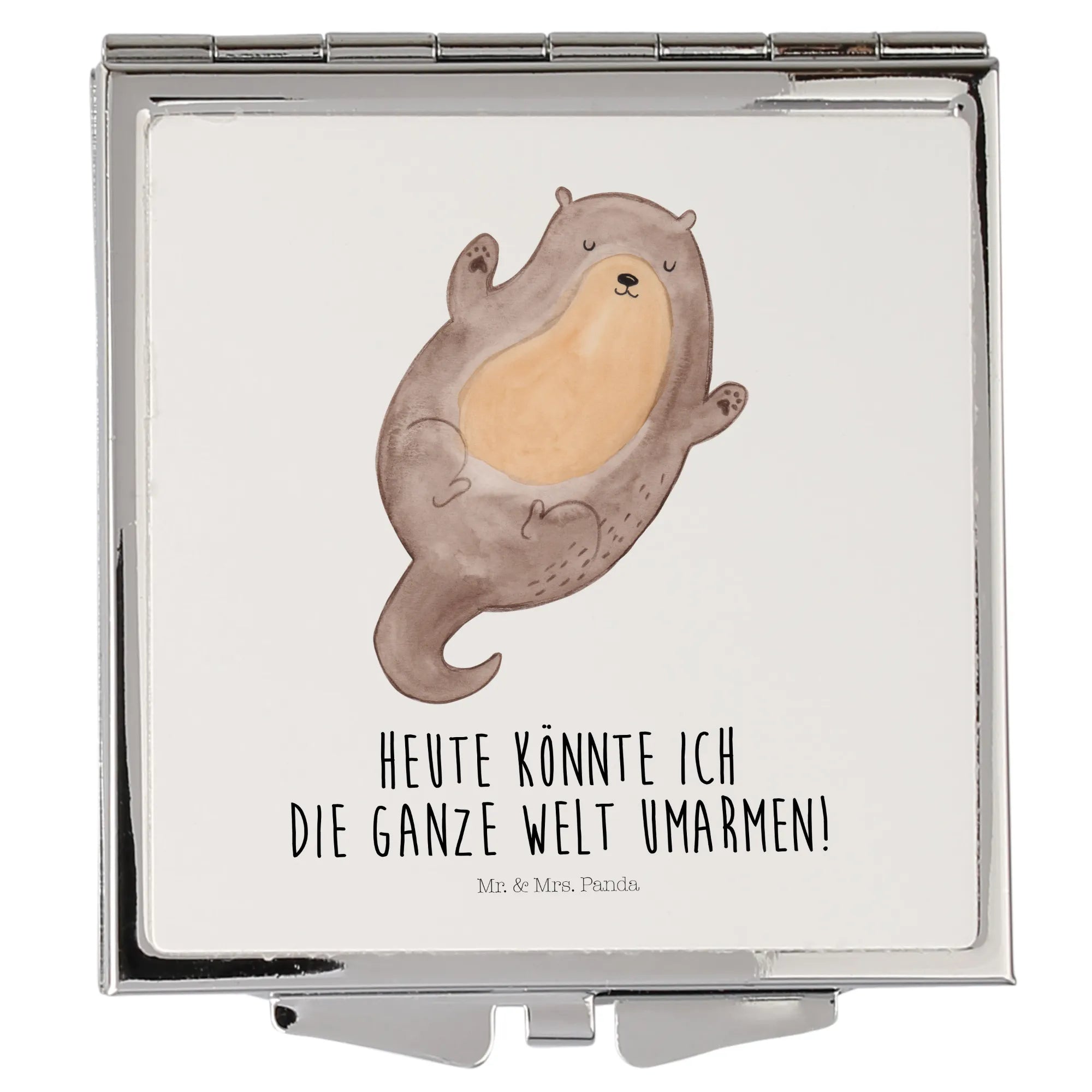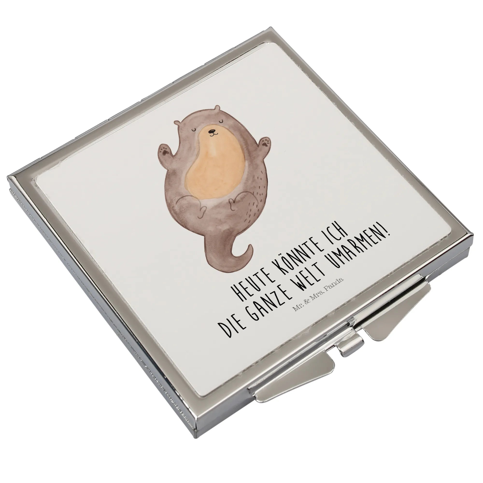 Handtaschenspiegel quadratisch Otter Umarmen - ohne Spruch - Weiß