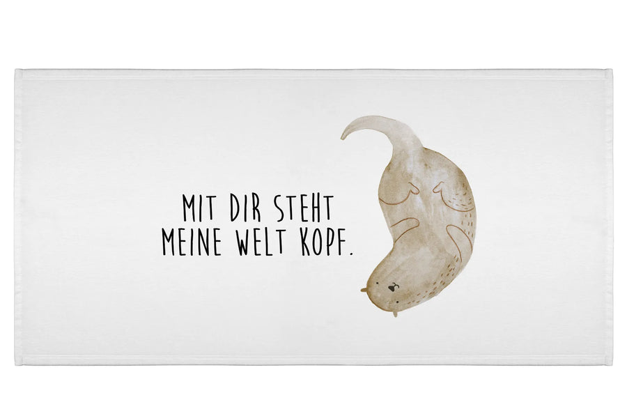Gästehandtuch Otter Kopfüber - 50 x 100 Handtuch - mit Spruch - Weiß