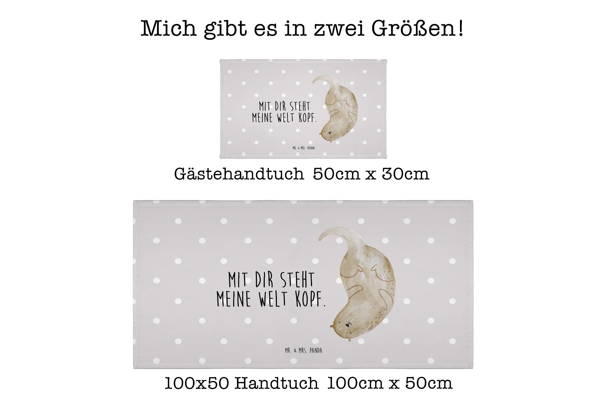 Die Otter-Kollektion von Mr. & Mrs. Panda ist eine liebevoll gestaltete Sammlung, die nicht nur eine Vielzahl an Motiven umfasst, sondern auch mit tollen Sprüchen verziert ist. Mit dem Motto "Mit Dir steht meine Welt Kopf" wird jedes Badetuch zur kleinen Inspirationsquelle.