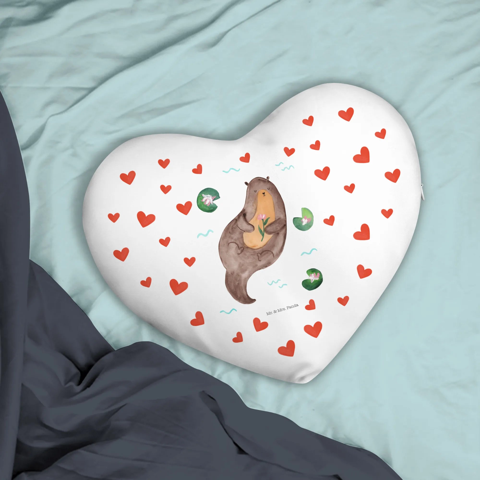 Mach jemanden glücklich oder gönn dir selbst dieses kuschelige Herzkissen von Mr. & Mrs. Panda und lass dich von der Lebensfreude des Otters anstecken!