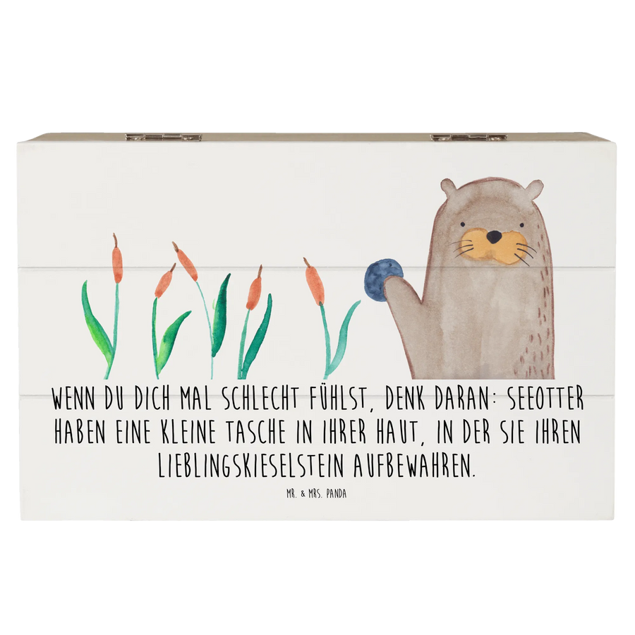 Die wunderschöne Holzkiste mit dem niedlichen Otter-Motiv "Otter mit Stein" von Mr. & Mrs. Panda ist das perfekte Geschenk für alle, die das Besondere lieben!