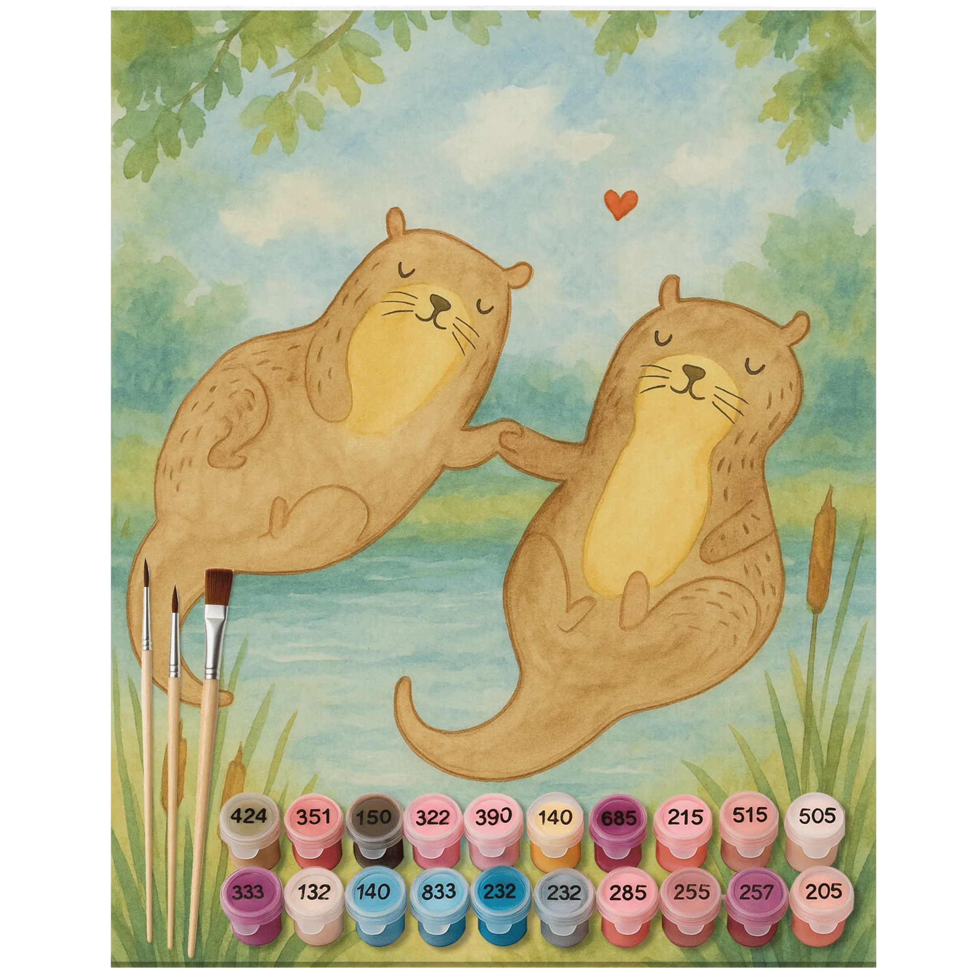 Malen nach Zahlen Otter Hände halten Design - No frame - 24 Farben (Standard)
