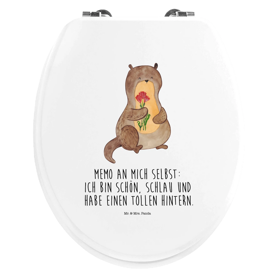 Ein zauberhafter WC-Sitz von Mr. & Mrs. Panda: Unser Motiv WC Sitz „Otter Blumenstrauß“ aus der Otter - Kollektion zeigt einen fröhlichen Seeotter mit einem bunten Blumenstrauß. Das liebevoll gezeichnete Motiv verleiht deinem Badezimmer einen heiteren, warmen Charakter und zaubert jedem ein Lächeln ins Gesicht.