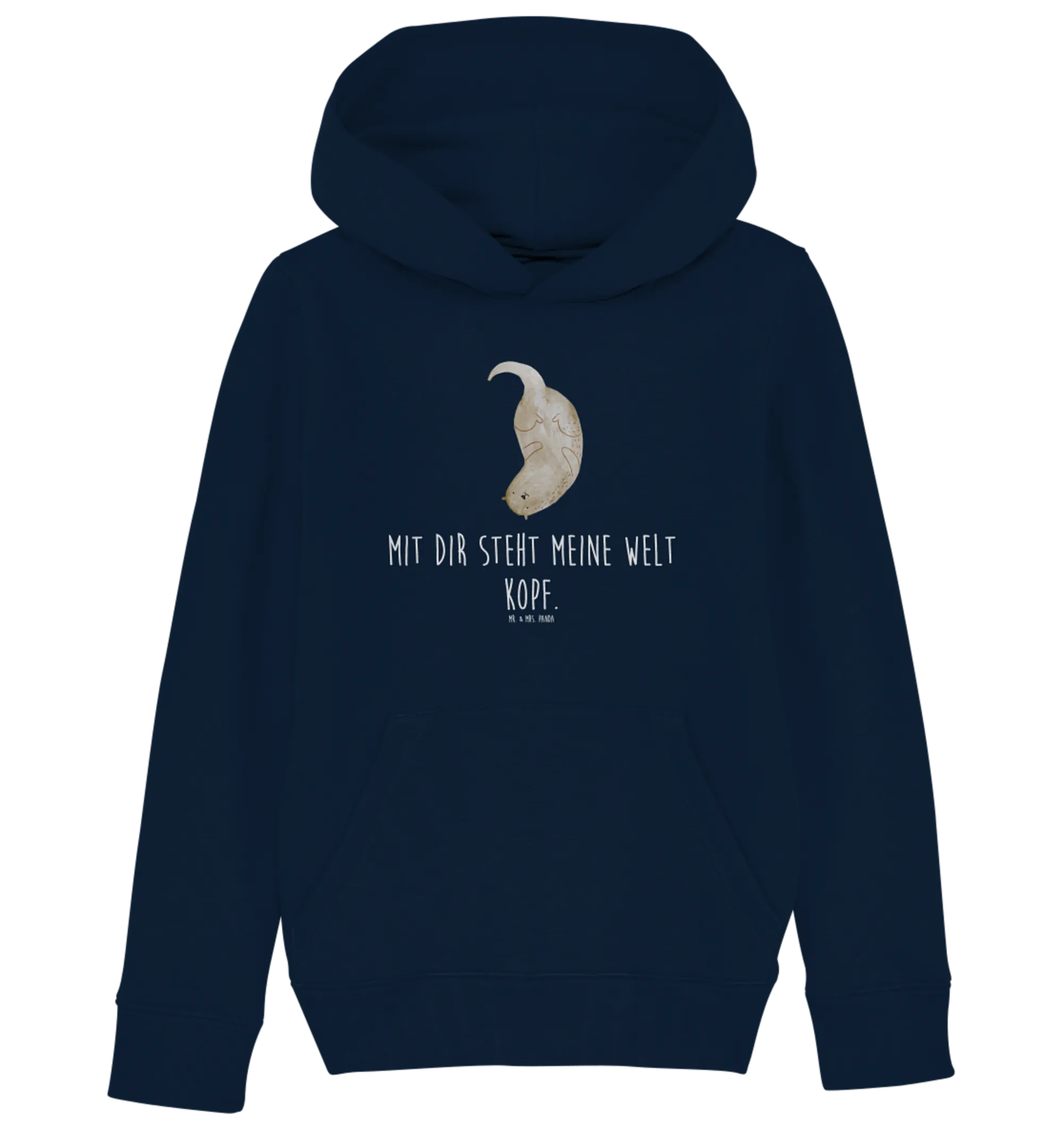 Die Otter-Kollektion von Mr. & Mrs. Panda ist eine liebevoll gestaltete Reihe von Produkten, die die Niedlichkeit und Lebensfreude der Otter einfängt. Jedes Motiv wird von Mrs. Panda mit viel Herzblut handgezeichnet und in fröhlichen Farben auf die Kleidungsstücke gedruckt. Mit dem Slogan 'Mit Dir steht meine Welt Kopf' vermittelt dieser Hoodie nicht nur eine besondere Botschaft, sondern erzeugt auch eine positive Stimmung.
