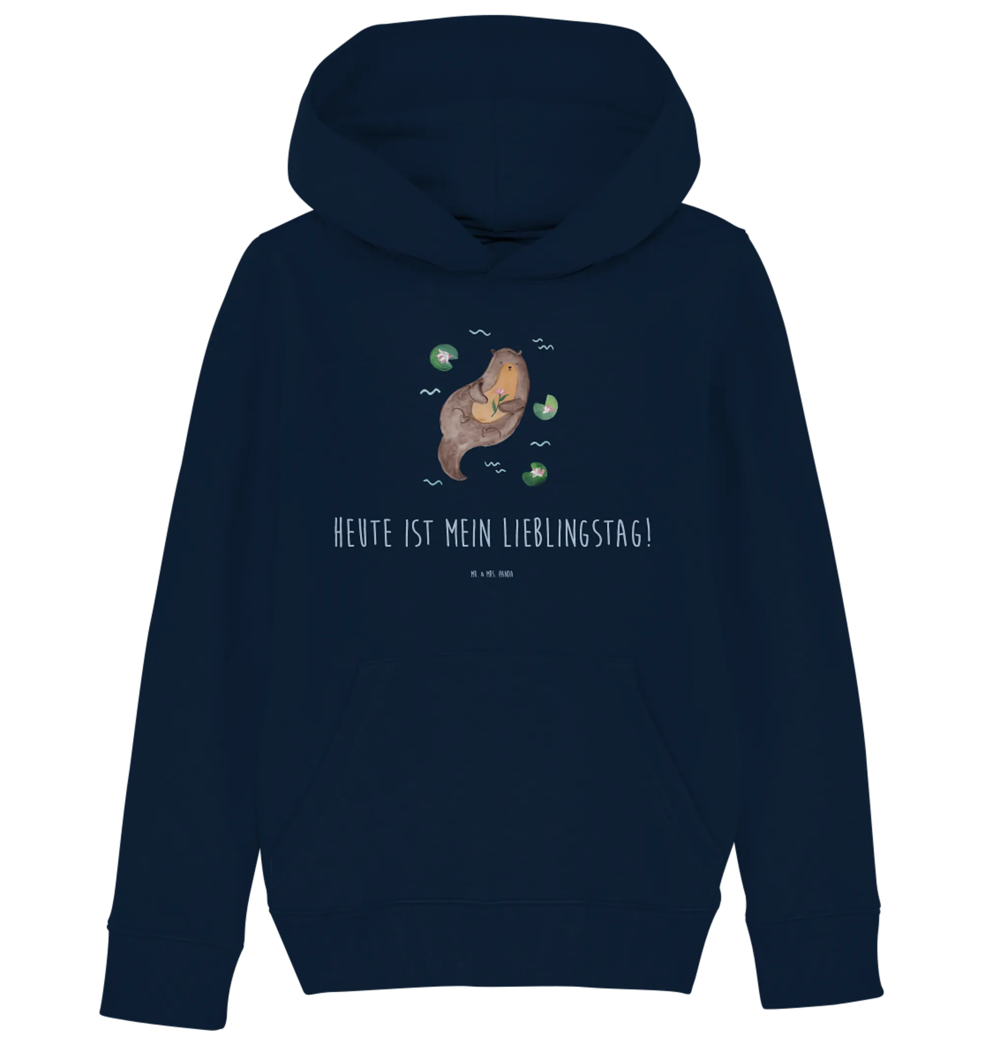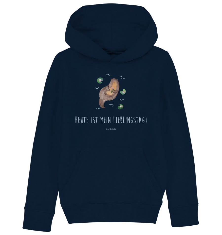 Der detaillierte Druck zeigt einen süßen Otter, der vergnüglich durch Seerosen schwimmt und trägt den liebevollen Spruch 'Heute ist mein Lieblingstag!'. So viel Freude und Lebensfreude bringt dieser Hoodie in den Tag!