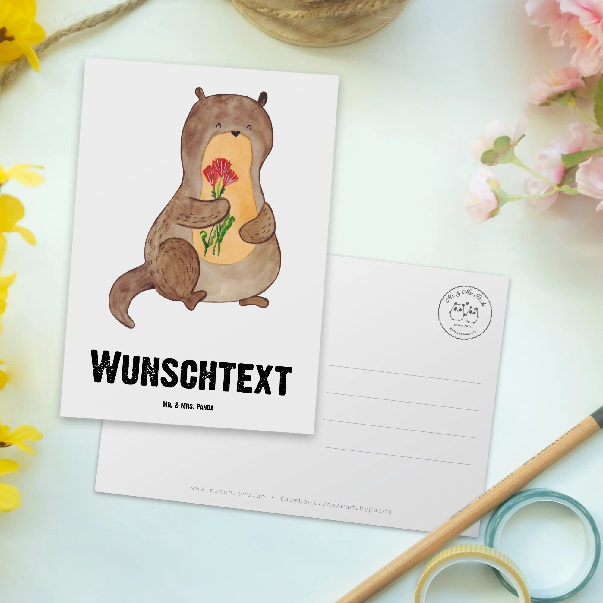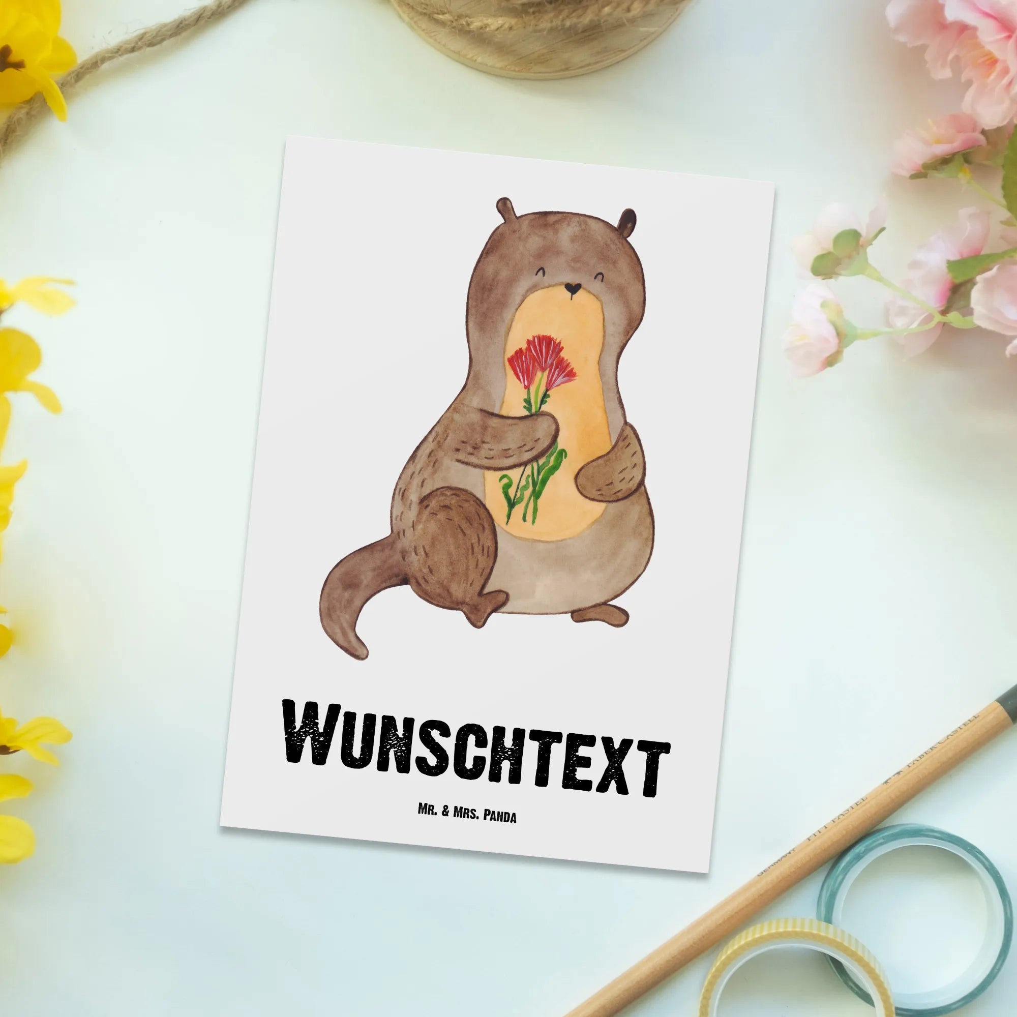 Personalisierte Postkarte Otter Blumenstrauß