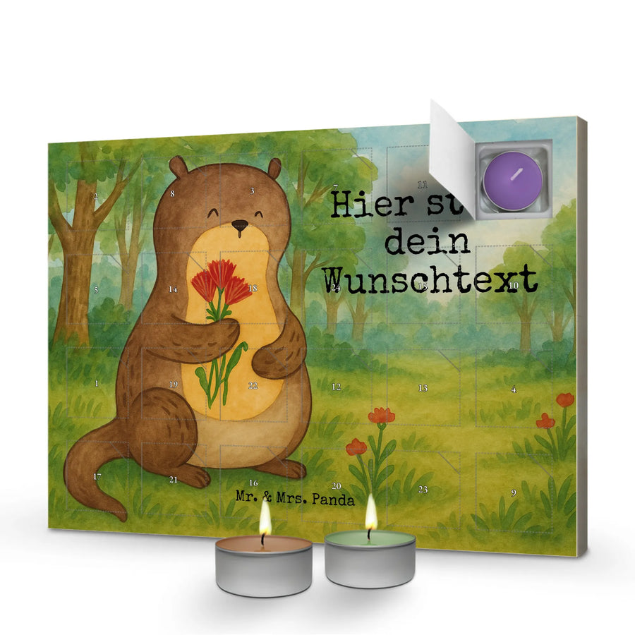 Personalisierter Duftkerzen Adventskalender Otter Blumenstrauß Design
