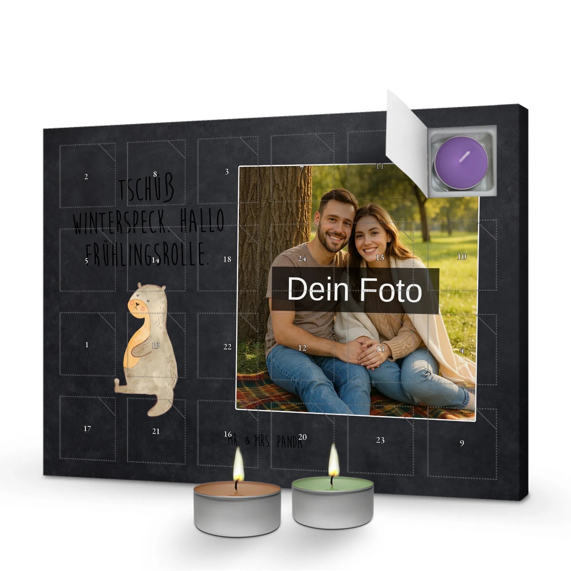 Personalisierter Duftkerzen Foto Adventskalender Otter Bauch - Kreidetafel