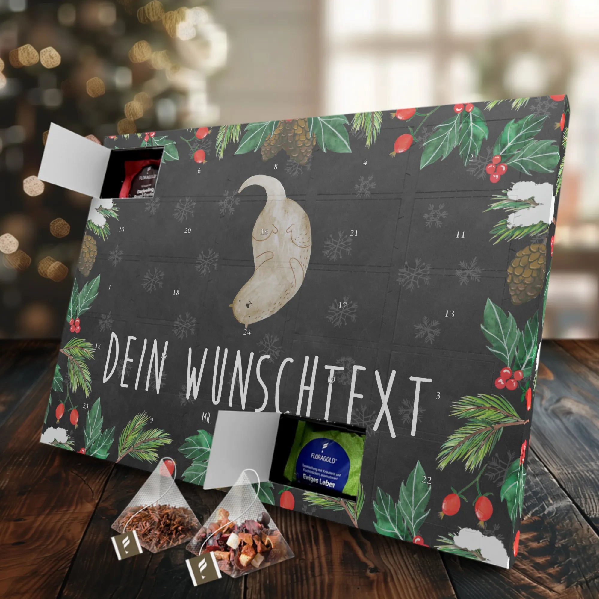 Personalisierter Tee Adventskalender Otter Kopfüber - Kreidetafel