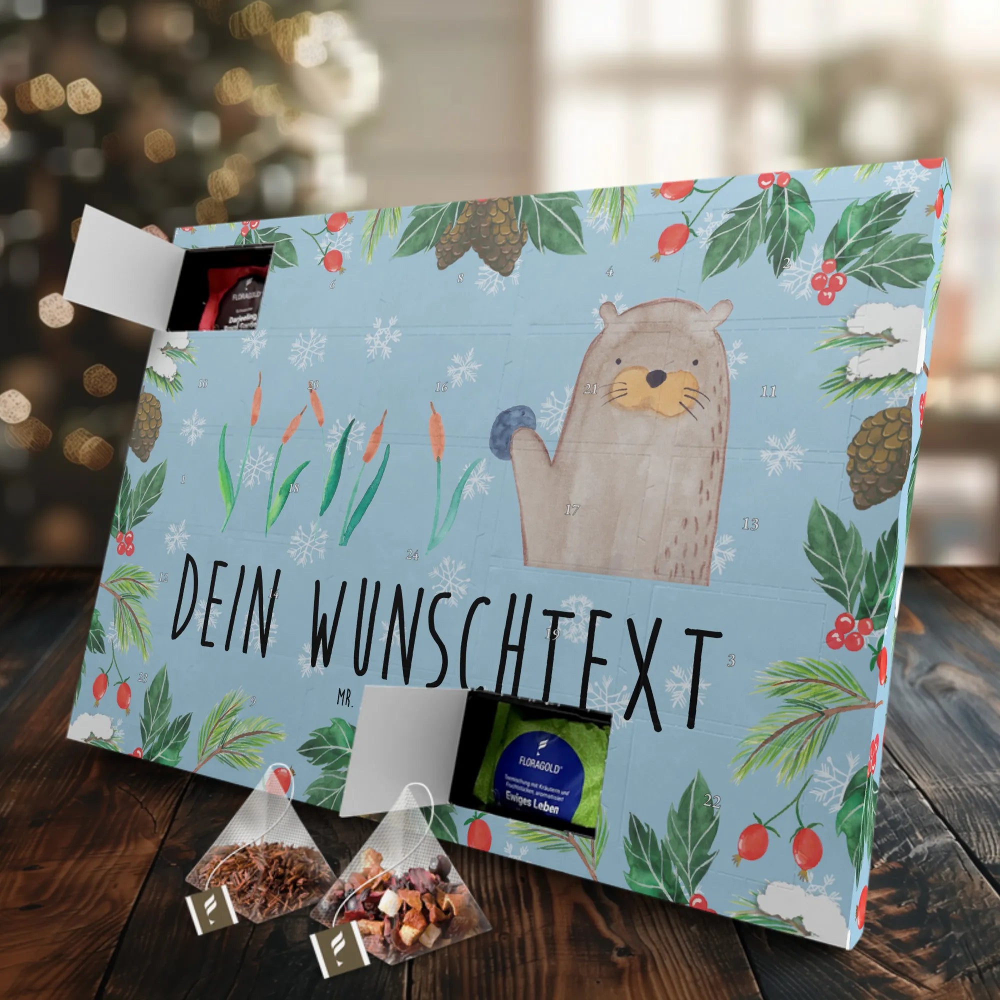 Die Otter-Kollektion von Mr. & Mrs. Panda ist perfekt für alle Otter-Fans! Jedes Motiv wird liebevoll von Mrs. Panda handgezeichnet und ist ein kleines Kunstwerk für sich. Der personalisierte Tee Adventskalender mit Otter-Motiv ist die ideale Geschenkidee für Teeliebhaber, Otter-Fans und jeden, der das Besondere liebt.