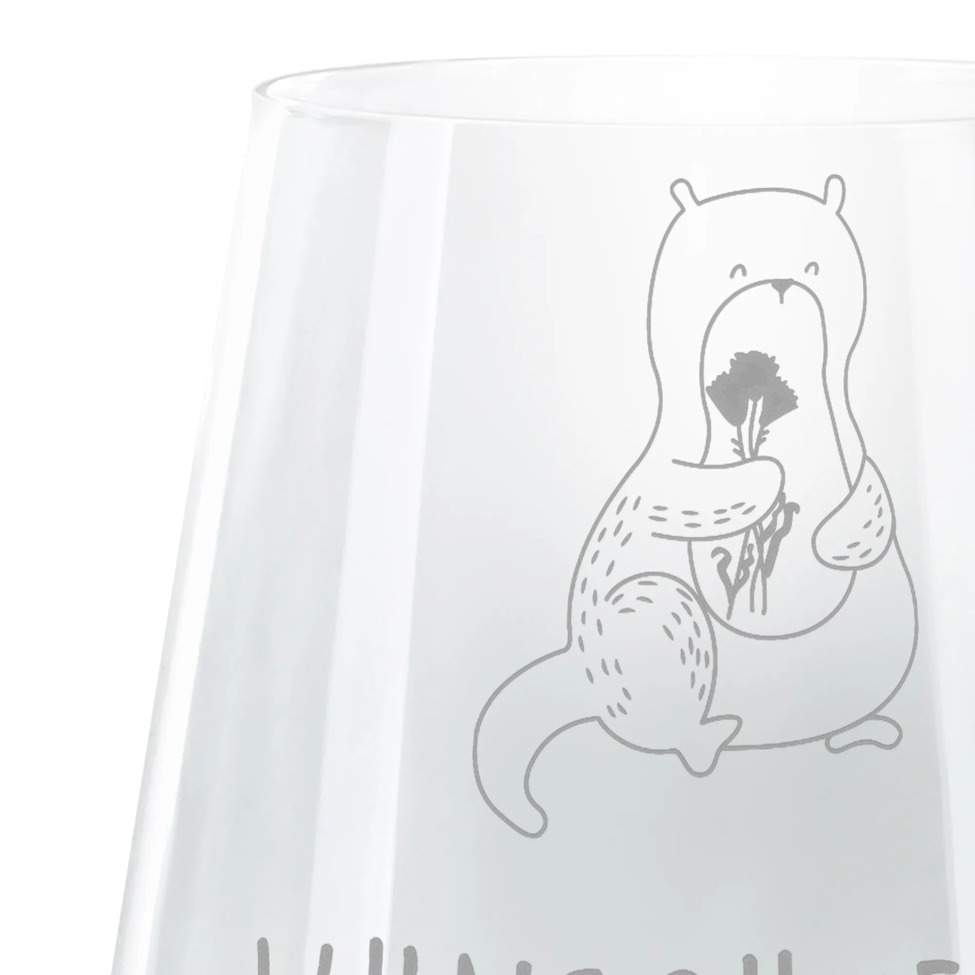 Das personalisierte Gravur Windlicht mit dem süßen Motiv "Otter Blumenstrauß" von Mr. & Mrs. Panda ist das perfekte Geschenk für jeden Anlass. Ob Geburtstag, Jubiläum oder einfach nur, um einem besonderen Menschen zu zeigen, wie viel er dir bedeutet – dieses Windlicht bringt Freude und Licht in jedes Zuhause. Gestaltet mit viel Liebe und einer hochwertigen Lasergravur, wird dieses robuste Teelichtglas sicherlich zum Blickfang in jedem Raum.