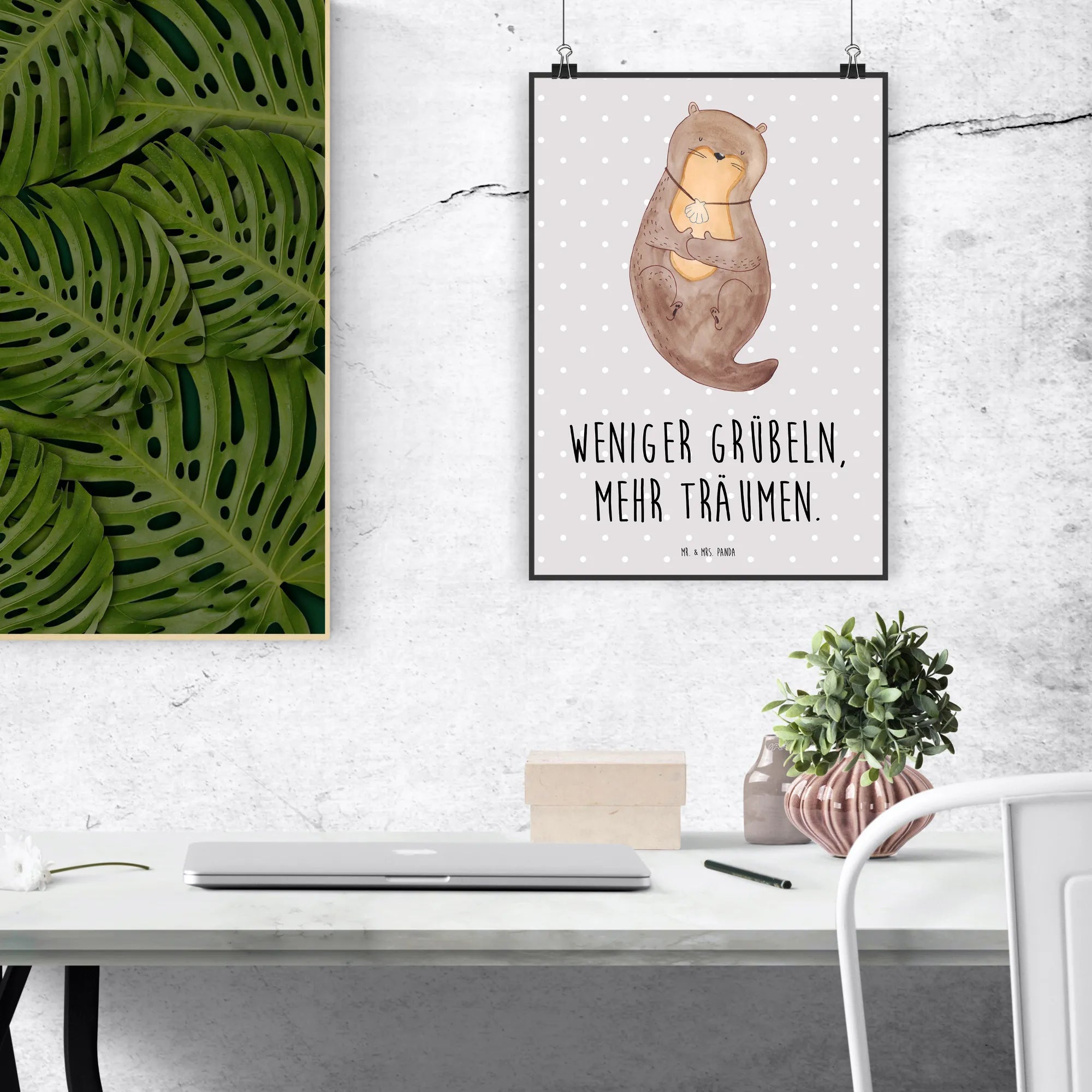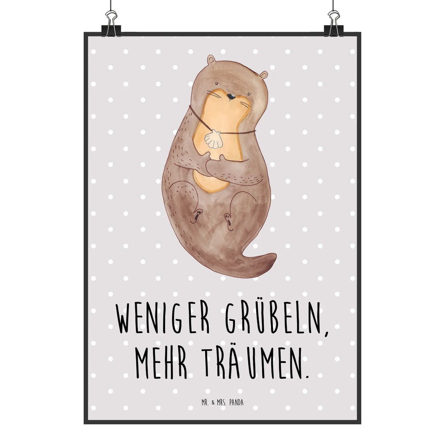 Poster Otter Muschel - DIN A0 - mit Spruch - Grau Pastell