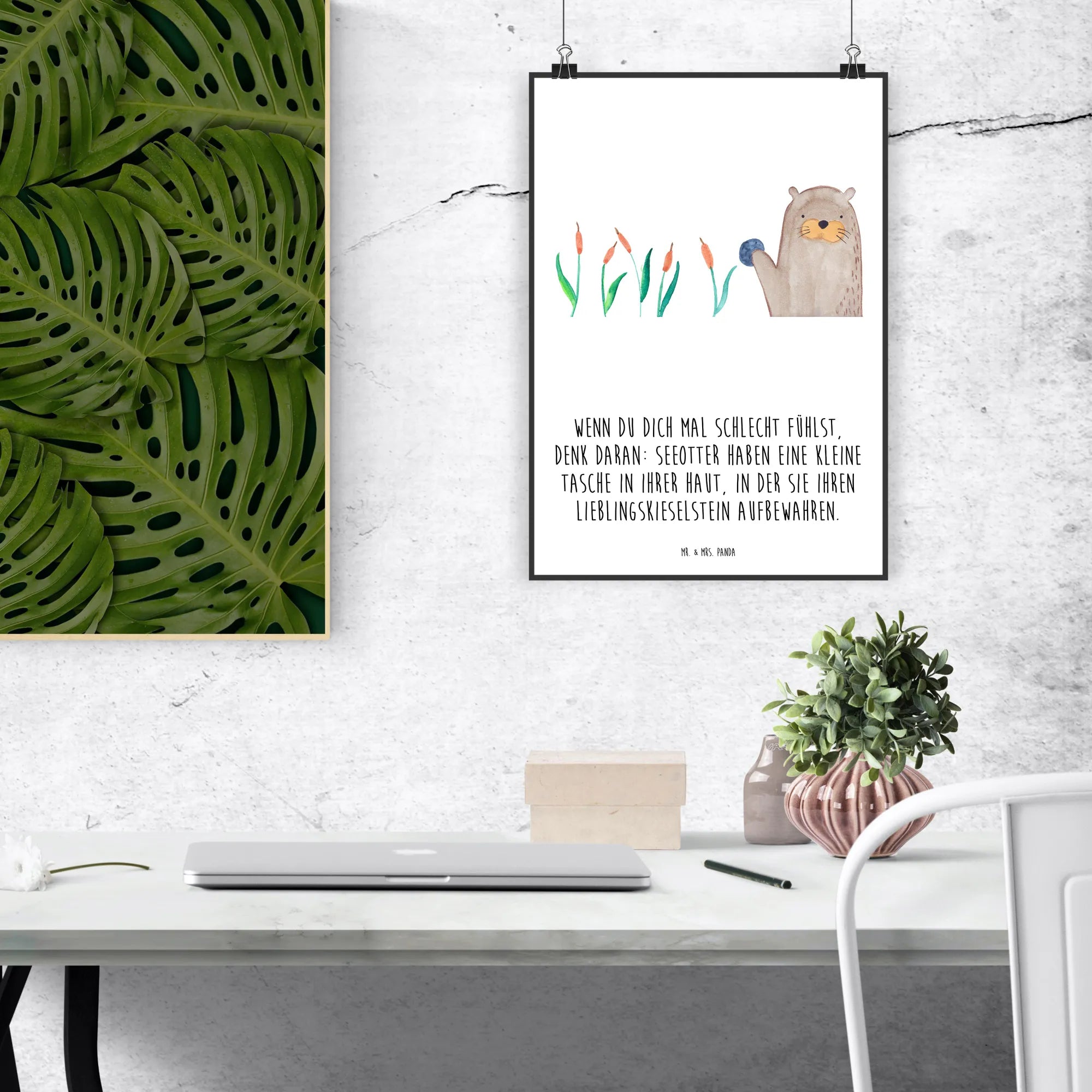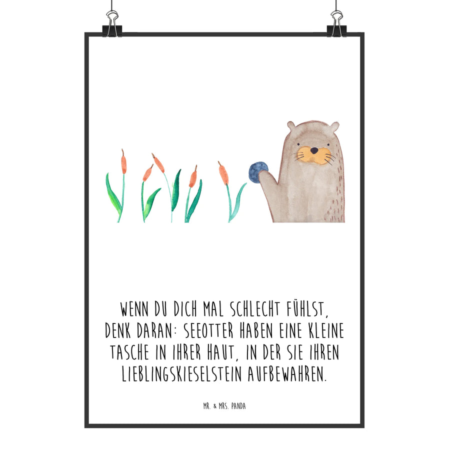 Wenn du eine originelle Wanddeko suchst, die außerdem mit einem herzerwärmenden Spruch versehen ist, dann ist dieses Poster genau das Richtige für dich. Der Slogan "Wenn du dich mal schlecht fühlst, denk daran: Seeotter haben eine kleine Tasche in ihrer Haut, in der sie ihren Lieblingskieselstein aufbewahren" macht es zu einer besonderen Erinnerung, die trotz schwieriger Zeiten ein Lächeln auf dein Gesicht zaubert.