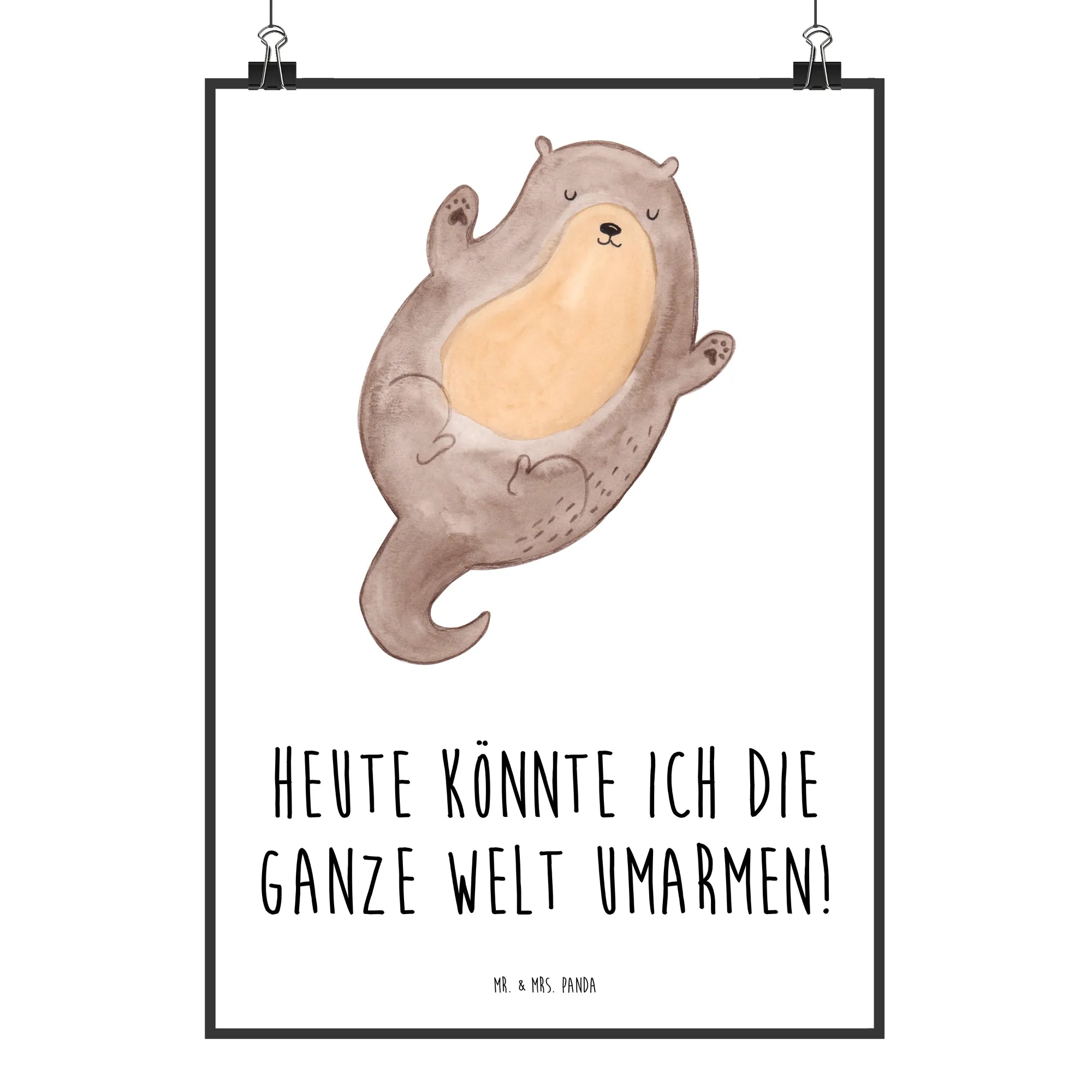 Entdecke das liebevolle Poster "Otter Umarmen" aus der zauberhaften Otter-Kollektion von Mr. & Mrs. Panda! 🦦 Dieses einzigartige Wandposter zeigt einen niedlichen Otter, der entspannt auf dem Rücken schwimmt und seine Arme weit ausbreitet, als wolle er die Welt umarmen. Ideal für die Raumdekoration in Kinderzimmern, Spielzimmern oder gar im Schlafzimmer, bringt dieser Kleniker ganz viel Lebensfreude in jeden Raum.
