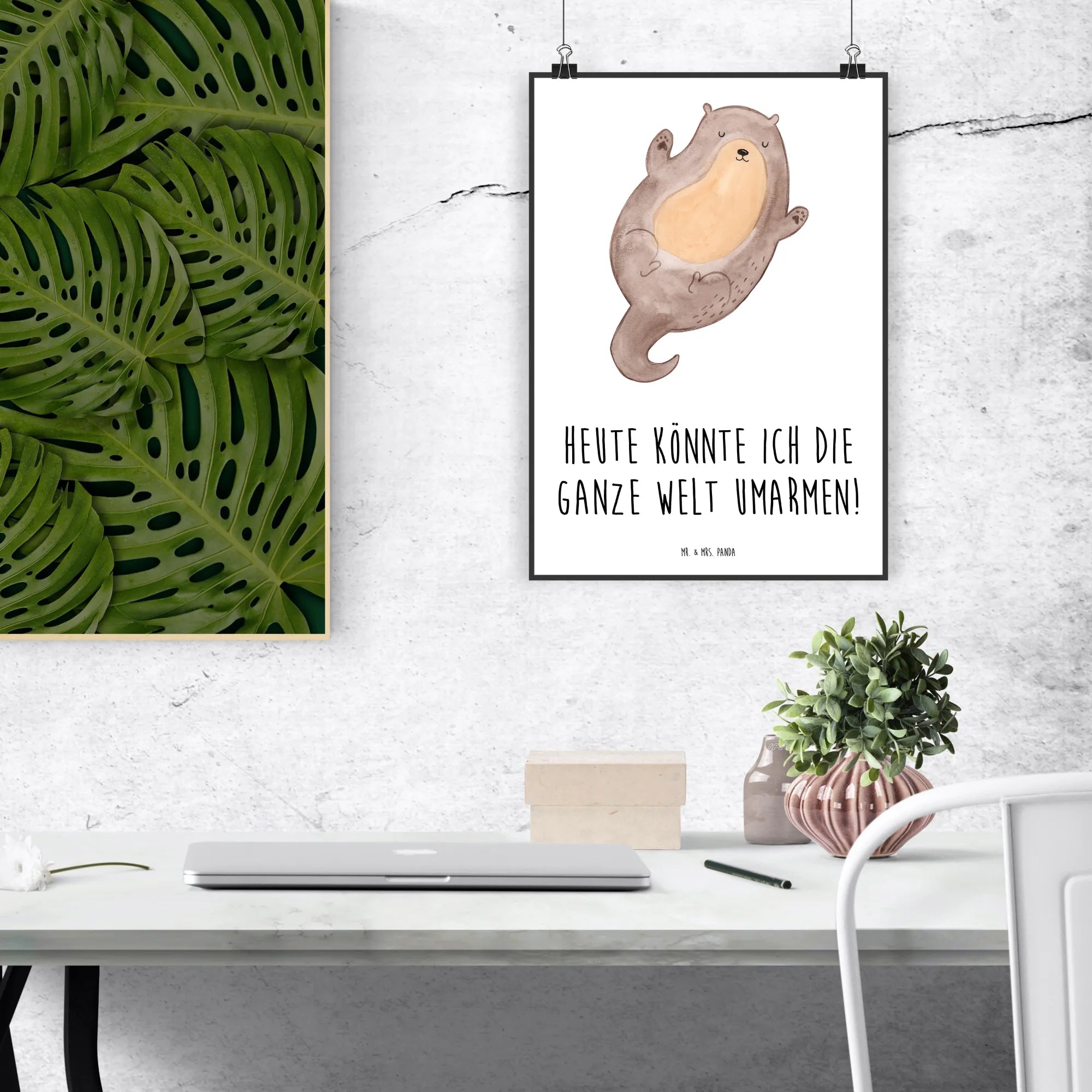 Willkommen in der wunderbar bunten Welt von Mr. & Mrs. Panda! Hier präsentieren wir dir unser fantastisches Poster mit dem Motiv 'Otter Umarmen'. Dieses fröhliche und liebevoll gestaltete Wandbild zeigt einen niedlichen Otter, der vergnügt auf dem Rücken schwimmt und seine kleinen Arme weit öffnet. Der dazugehörige Spruch 'Heute könnte ich die ganze Welt umarmen!' zaubert sofort ein Lächeln in dein Gesicht und bringt positive Energie in jeden Raum.