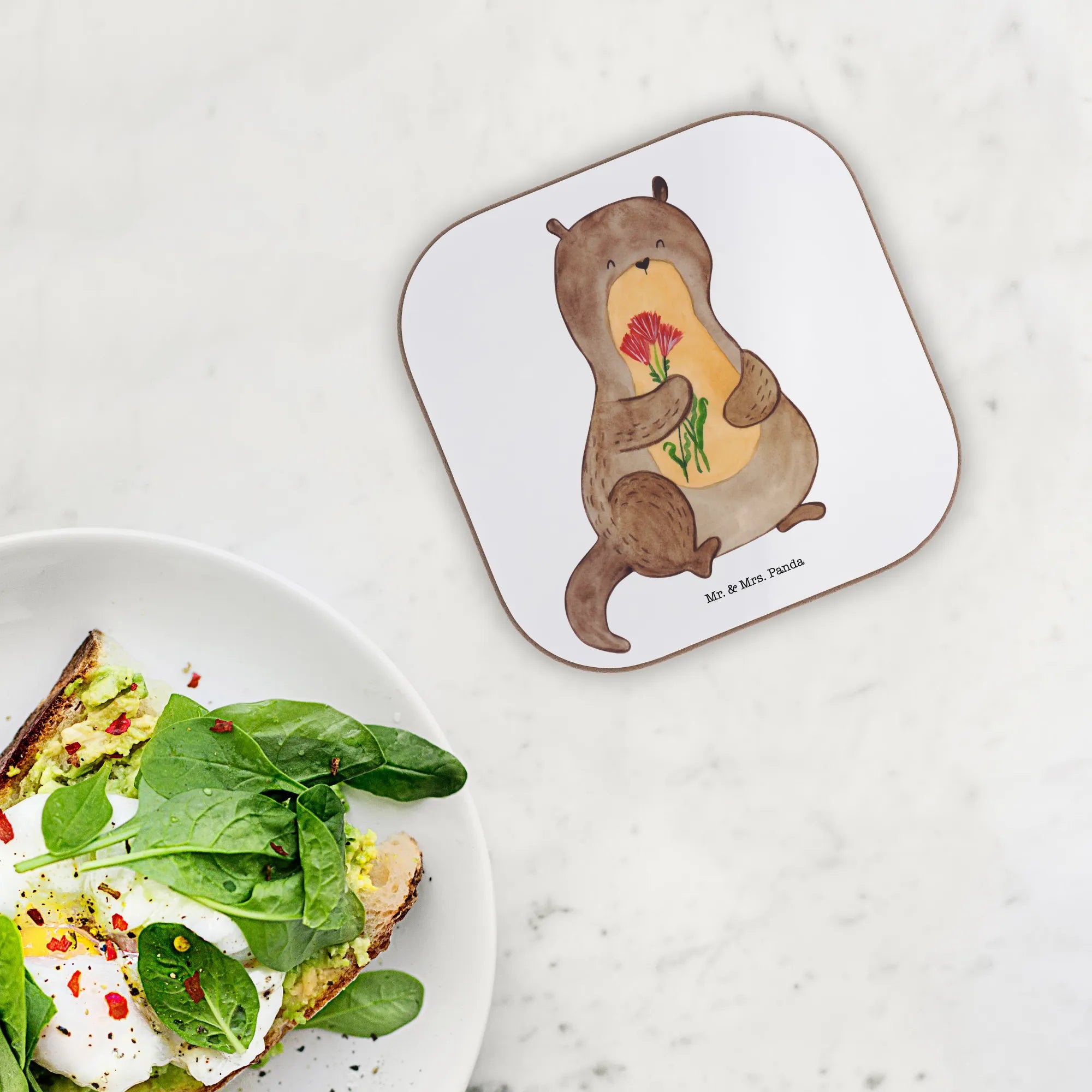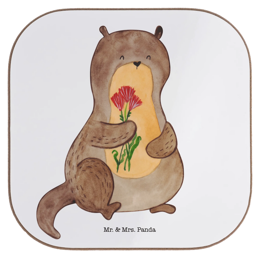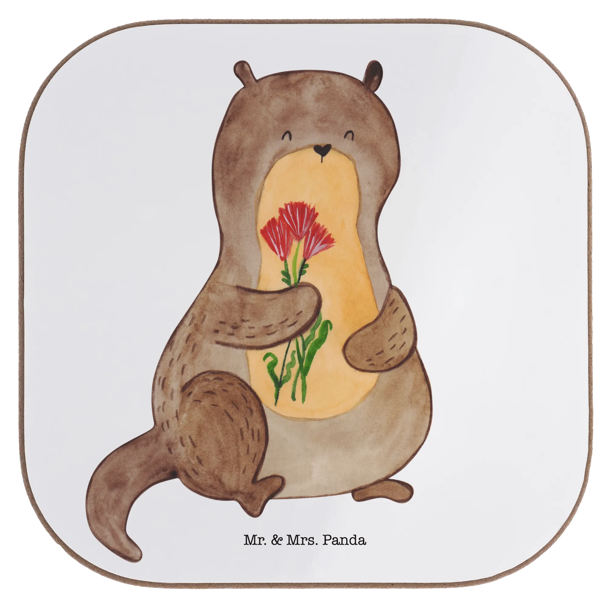 Quadratische Untersetzer Otter Blumenstrauß - ohne Spruch - Weiß
