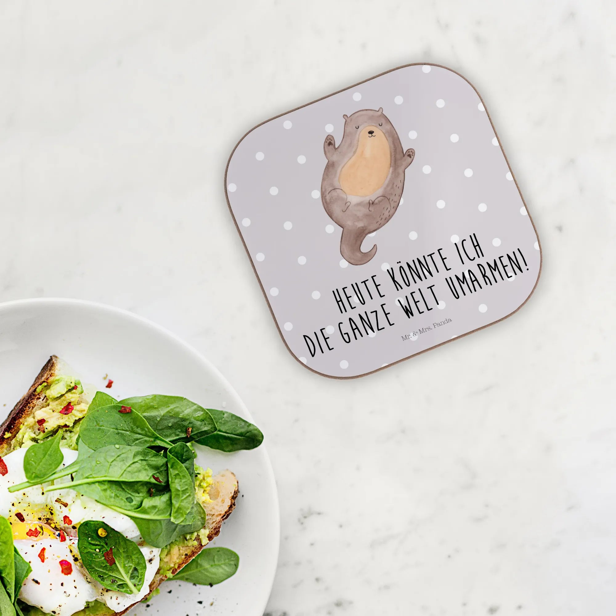 Willkommen in der wundervollen Welt von Mr. & Mrs. Panda! Unser quadratischer Untersetzer mit dem zauberhaften Motiv "Otter Umarmen" aus der Otter-Kollektion ist das perfekte Geschenk für alle Otter-Fans und Tierliebhaber. Mit einer Größe von 100 mm x 100 mm und einer Dicke von 5 mm, bietet dieser Untersetzer nicht nur einen einzigartigen Blickfang auf deinem Tisch, sondern schützt auch vor Abdrücken und Kratzern. Ob für ein gemütliches Beisammensein mit Freunden bei einem Bier, oder als stilvolles Accessoire für einen Tea-Time Nachmittag – dieser Untersetzer zaubert jedem ein Lächeln ins Gesicht!