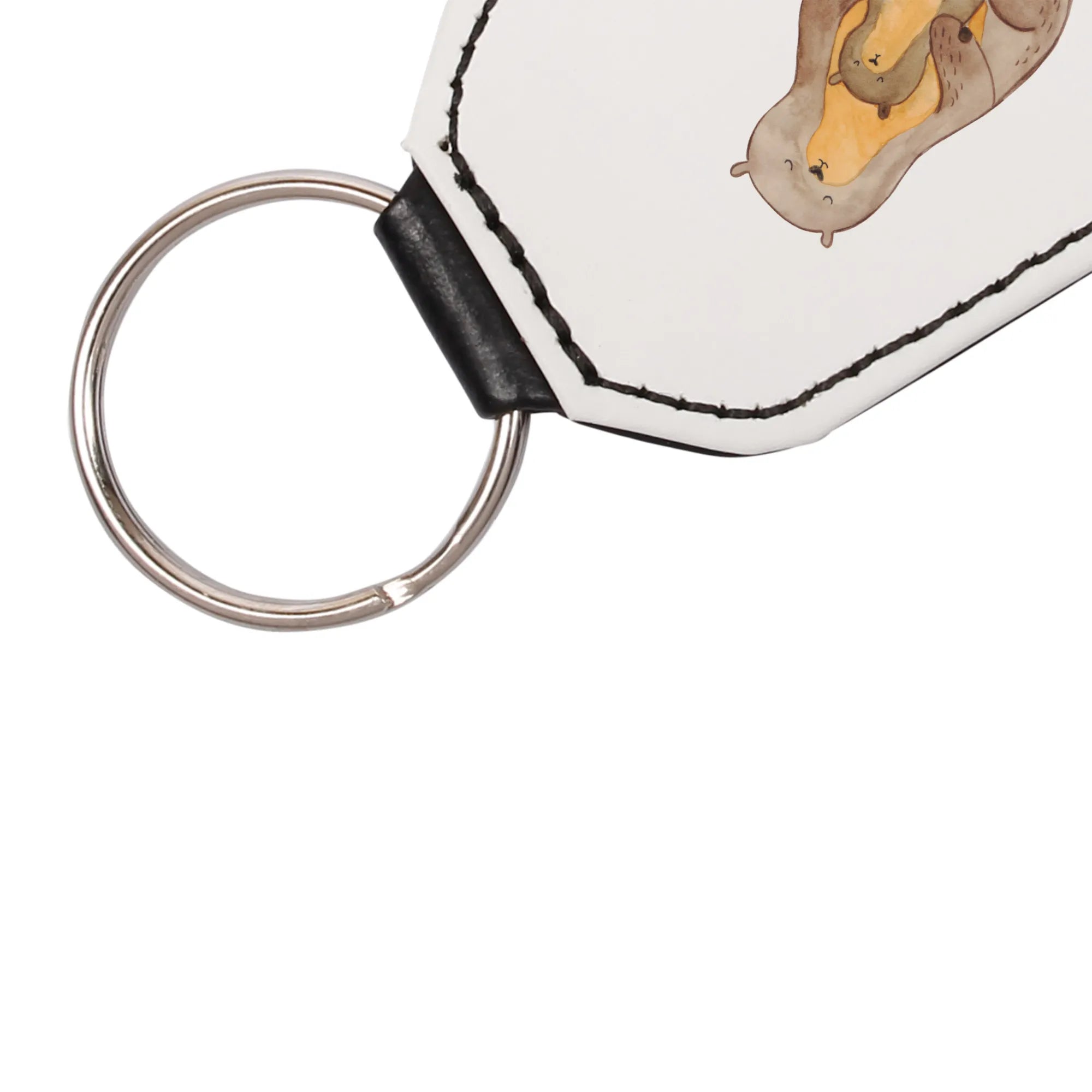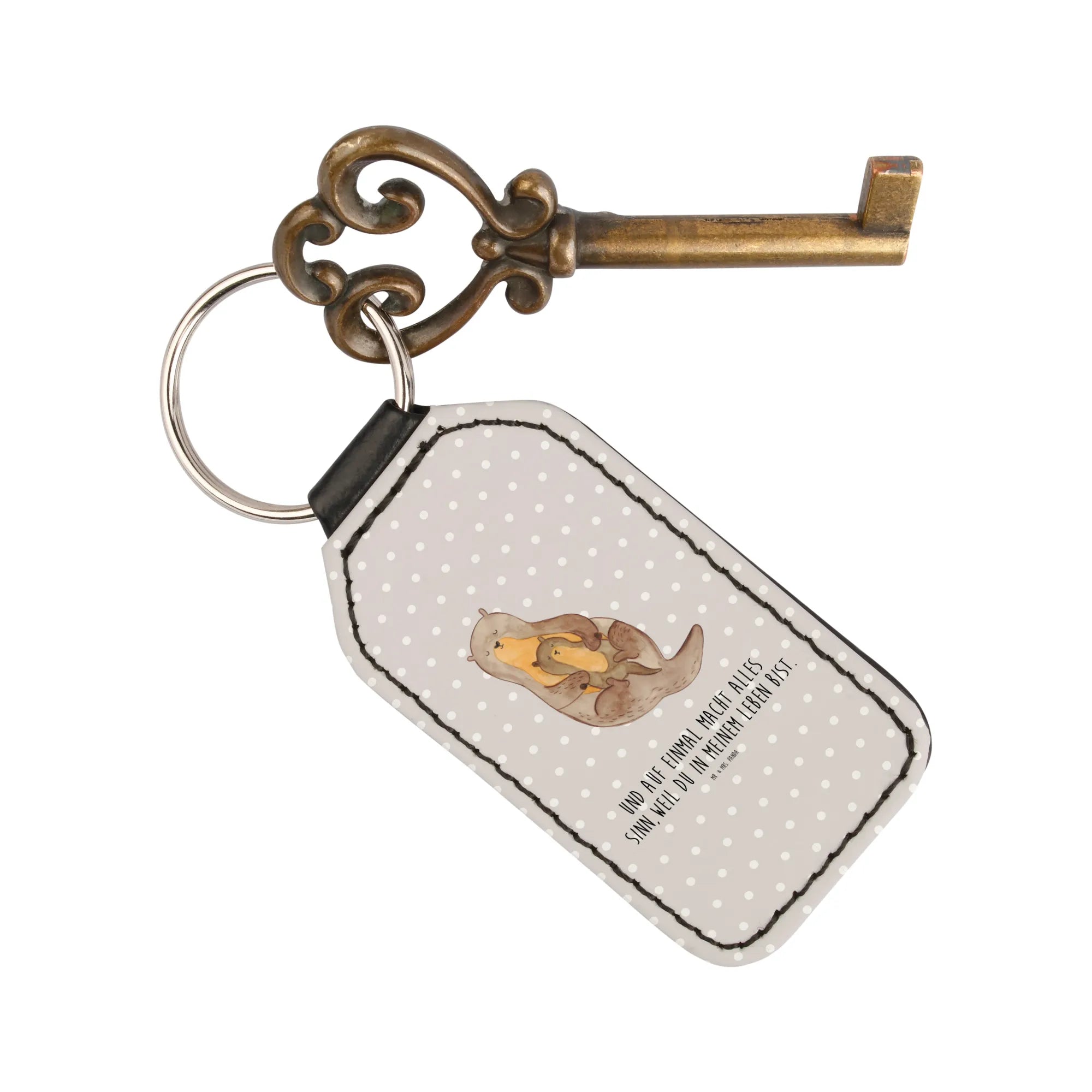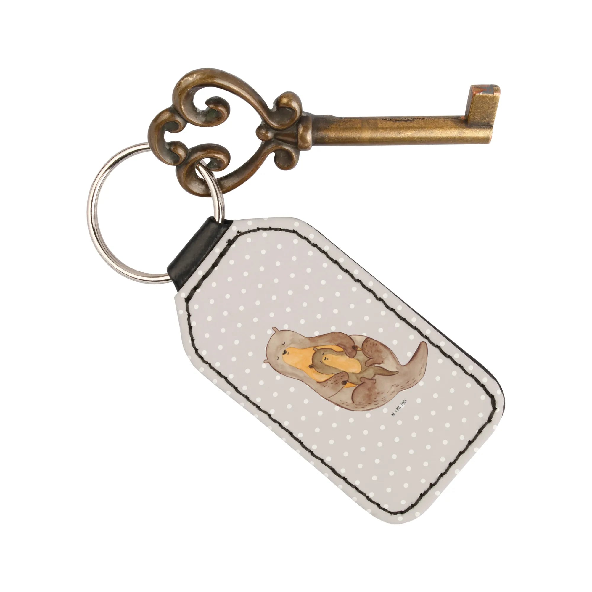 Der Rechteckige Schlüsselanhänger "Otter mit Kind" aus der Otter-Kollektion von Mr. & Mrs. Panda ist ein kleines, aber feines Geschenk, das Herzen höherschlagen lässt. Dieser wunderschöne Schlüsselanhänger aus edlem Premium Kunstleder wird deine Schlüssel in ein wahres Schmuckstück verwandeln. Mit dem niedlichen Motiv des Otters, der liebevoll seinen kleinen Otter auf dem Bauch hält, zauberst du ein Lächeln auf jedes Gesicht.