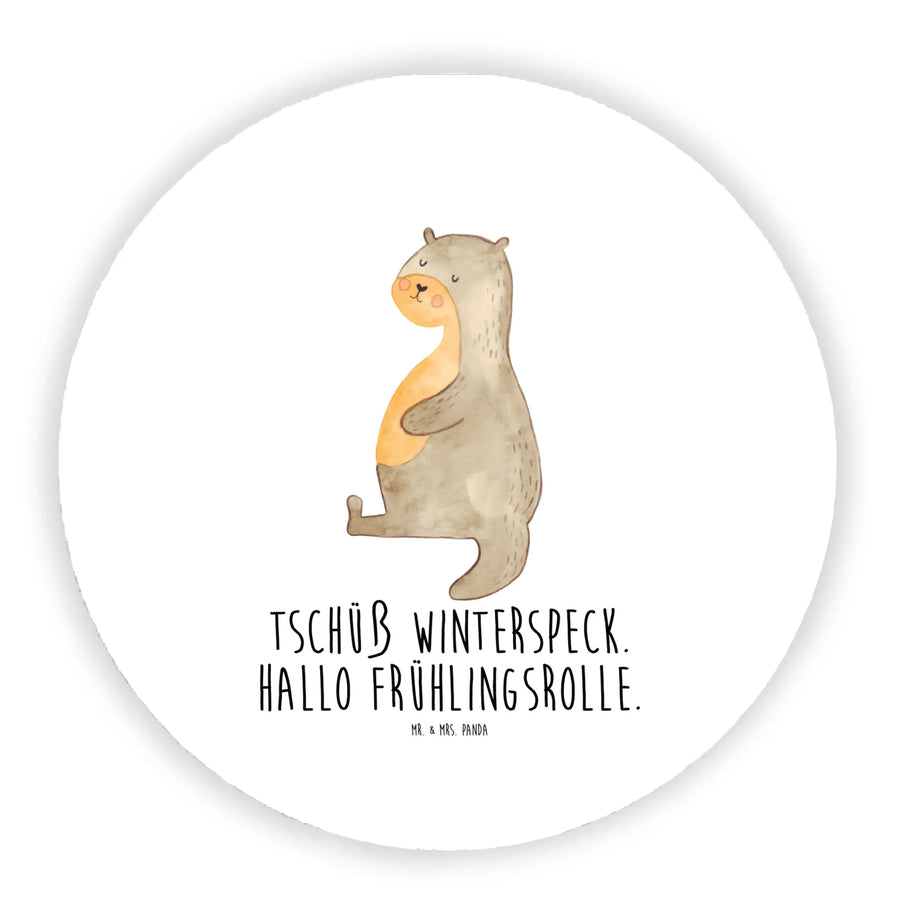 Rund Magnet Otter Bauch - mit Spruch - Weiß
